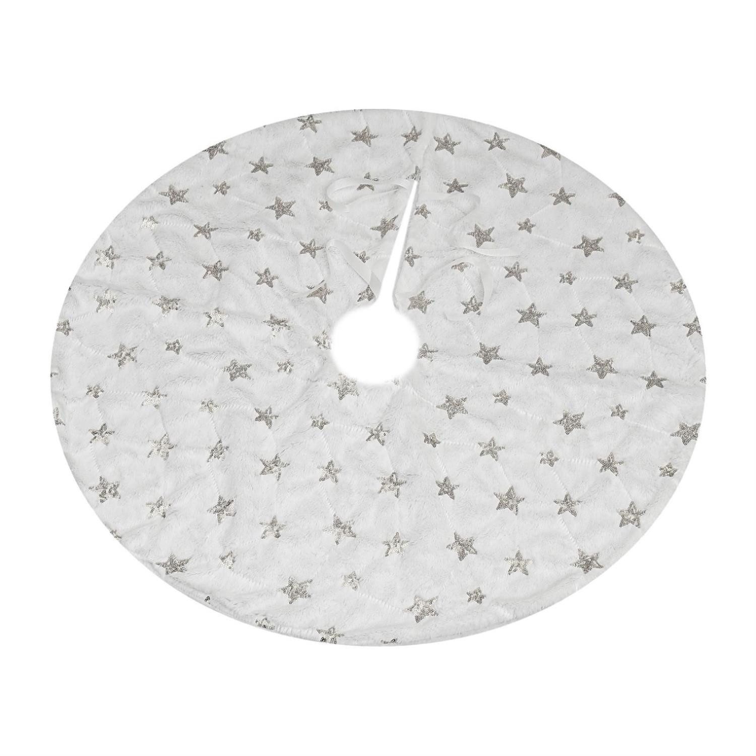 Die weiße Weihnachtsbaumdecke mit den silbernen Pailletten Schneeflocken ist die perfekte Unterlage für Deinen Tannenbaum. Der runde Teppich dient nicht nur als Schutz für Deinen Boden, sondern fängt auch die Baumnadeln für Dich auf.