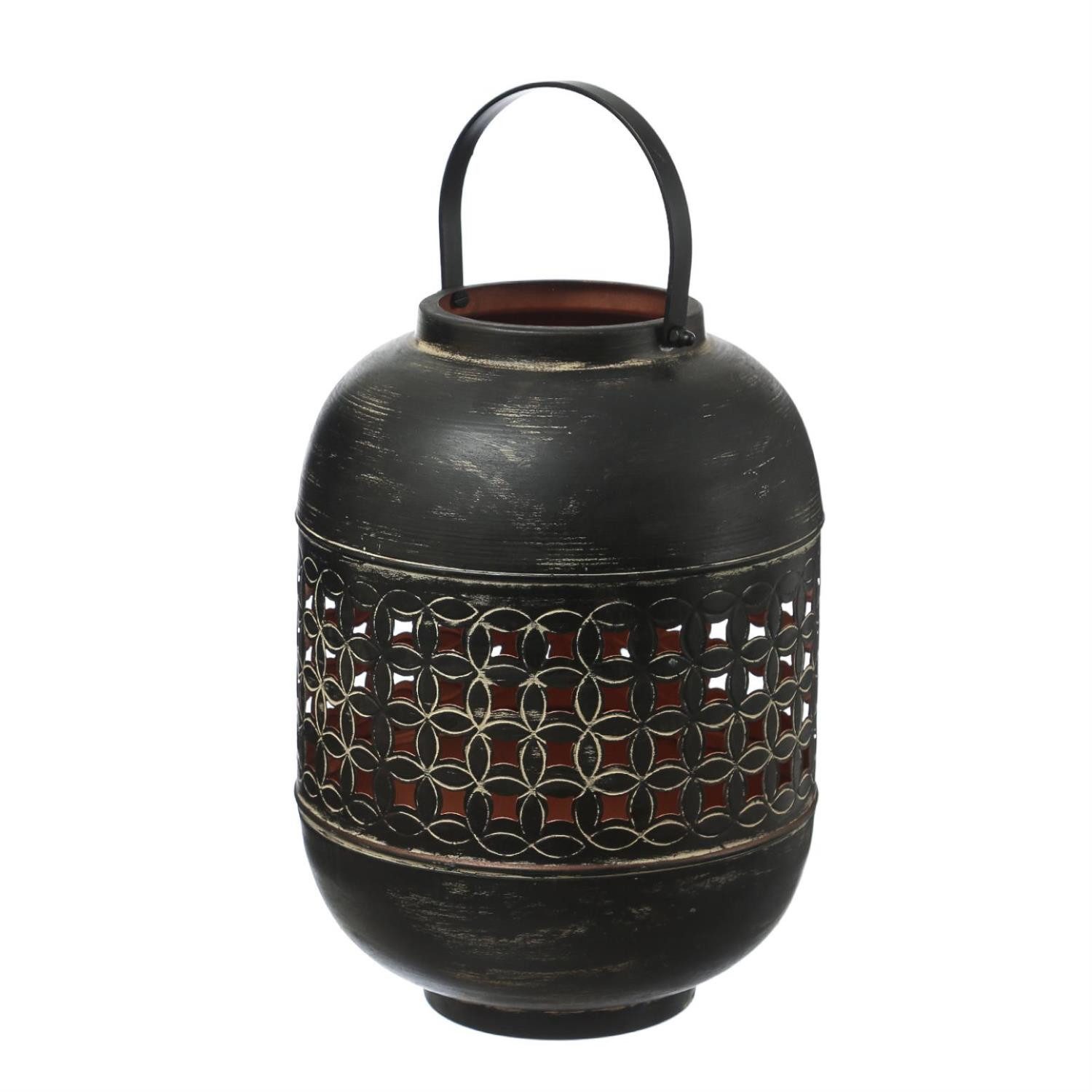 Die schwarze Laterne in Vintagestil ist die perfekte Dekoration für Dein Zuhause. Du kannst die Laterne mit Henkel überall in Deinem Wohnraum aufstellen und für einen Blickfang sorgen. Die hochwertige Laterne ist aus Metall von Hand gefertigt und innen mit kupferfarbener Farbe lackiert. Das ergibt ein ganz weiches und angenehmes Licht, das für eine besonders gemütliche Atmosphäre sorgt.