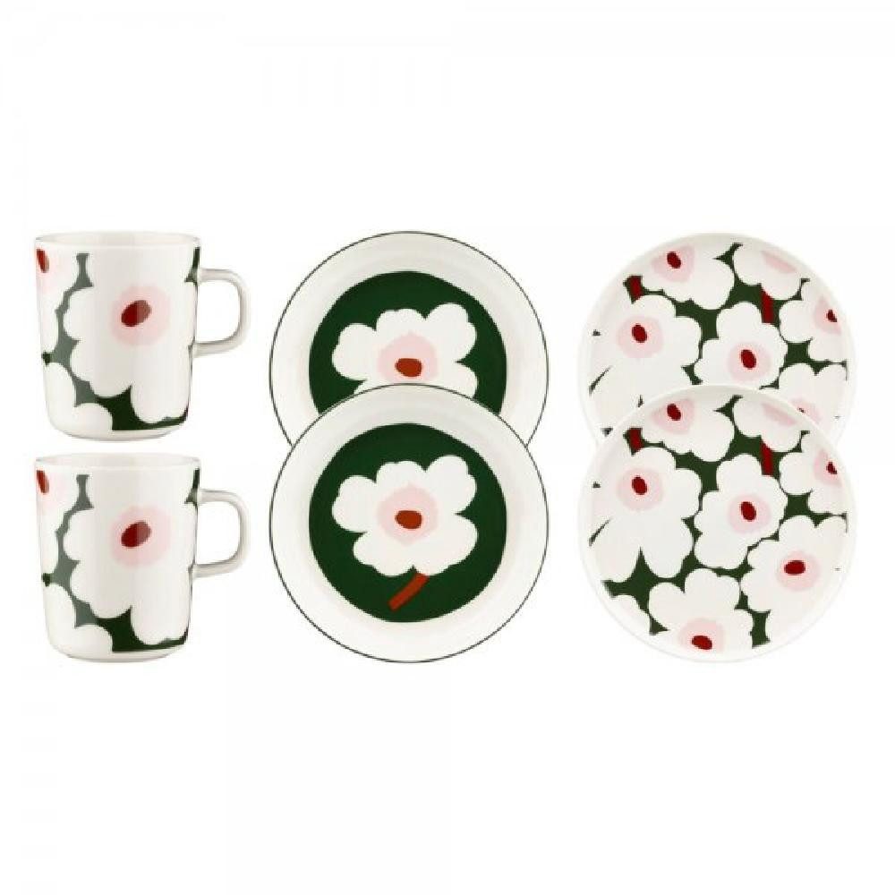Marimekko Geschirr-Set Geschirr-Set Oiva Unikko Weiß Grün Rosa (6-teilig)