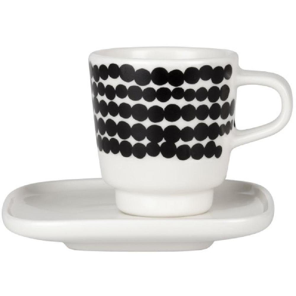 Marimekko Tasse Espressotasse mit Untertasse Oiva-Siirtolapuutarha Weiß-Schwarz (2-tei