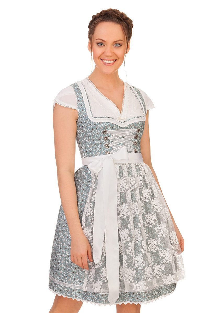 Material Dirndl: 100% Baumwolle Material Futter Mieder: 65% Polyester, 35% Baumwolle Material Schürze: 100% Polyester Farbe: hellblau Größen: 30 - 46 Handwäsche