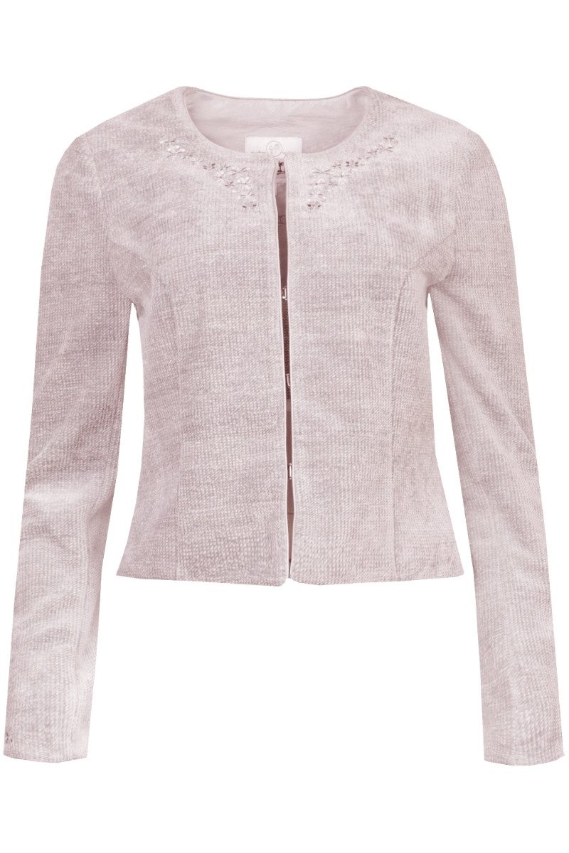 Die hinreißende, kurze Trachtenjacke Bella für Damen besteht aus herrlich samtigem Strick-Material mit feiner, waffelartiger Struktur und ist leicht tailliert mit Wiener Naht geschnitten. Den Rundhals-Ausschnitt beidseitig vorn sowie die Ärmelenden sind mit wundervollen, farbigen Blumen-Stickereien veredelt. Als Verschluss dient eine verdeckte Haken-Ösen-Leiste. Sowohl die Vorderseite als auch der obere Rücken haben ein Futter aus wundervoll changierendem Taft, das als edle Paspelkante außen sichtbar ist. Die Ärmel sind angenehm mit elastischem Material gefüttert. Der Saum und die Ärmelenden sind innen mit schillerndem Taft verstärkt. Die kuschelig weiche Damenjacke lässt sich herrlich zu Dirndl, Trachtenrock, Lederhose und Trachtenjeans kombinieren. Bitte beachten Sie den Größenzuschlag bei Размер 48.
