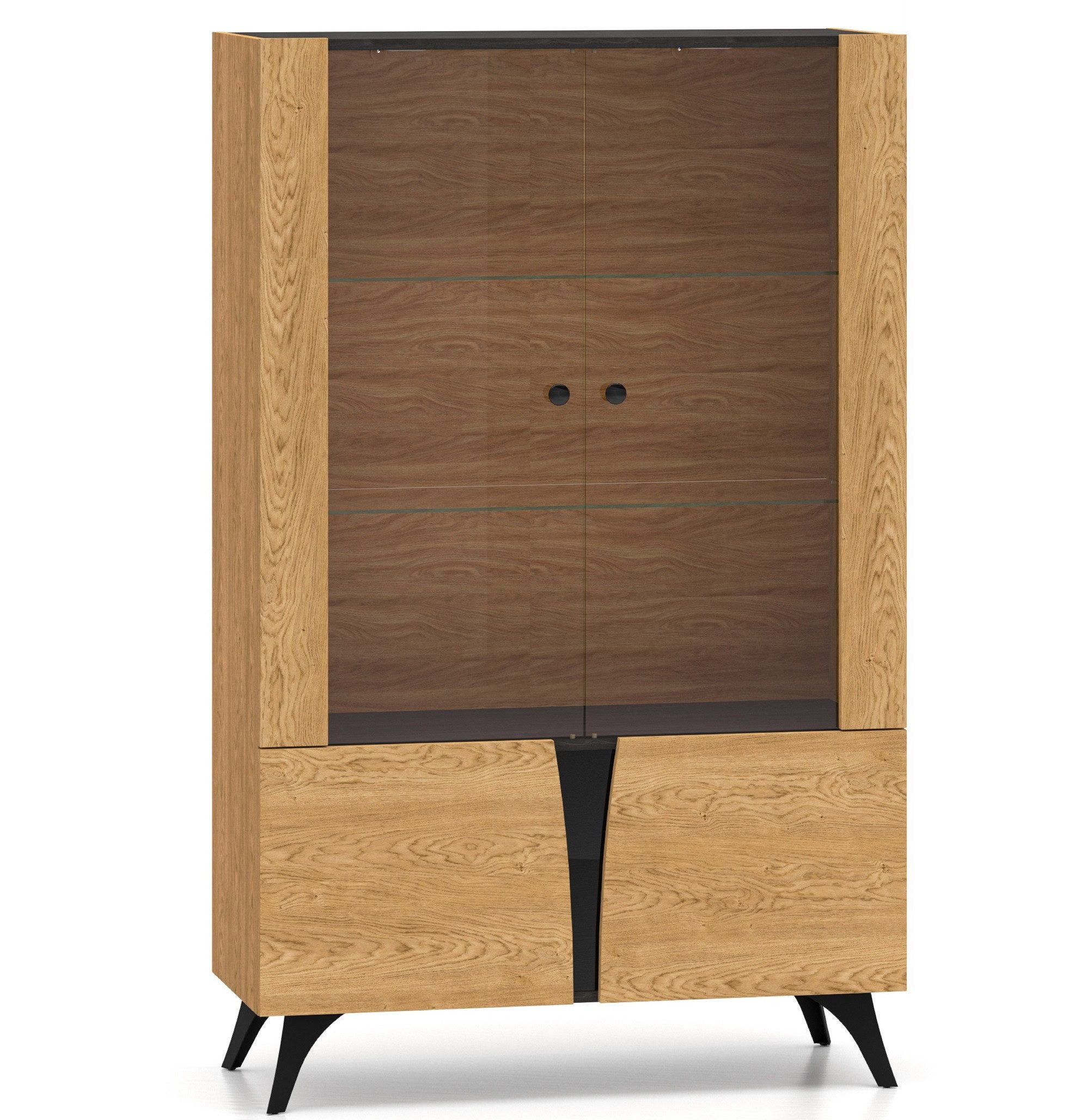 Farbe | Eiche Baltic Dune + Esche Portland Schwarz + Schwarzes Glas |