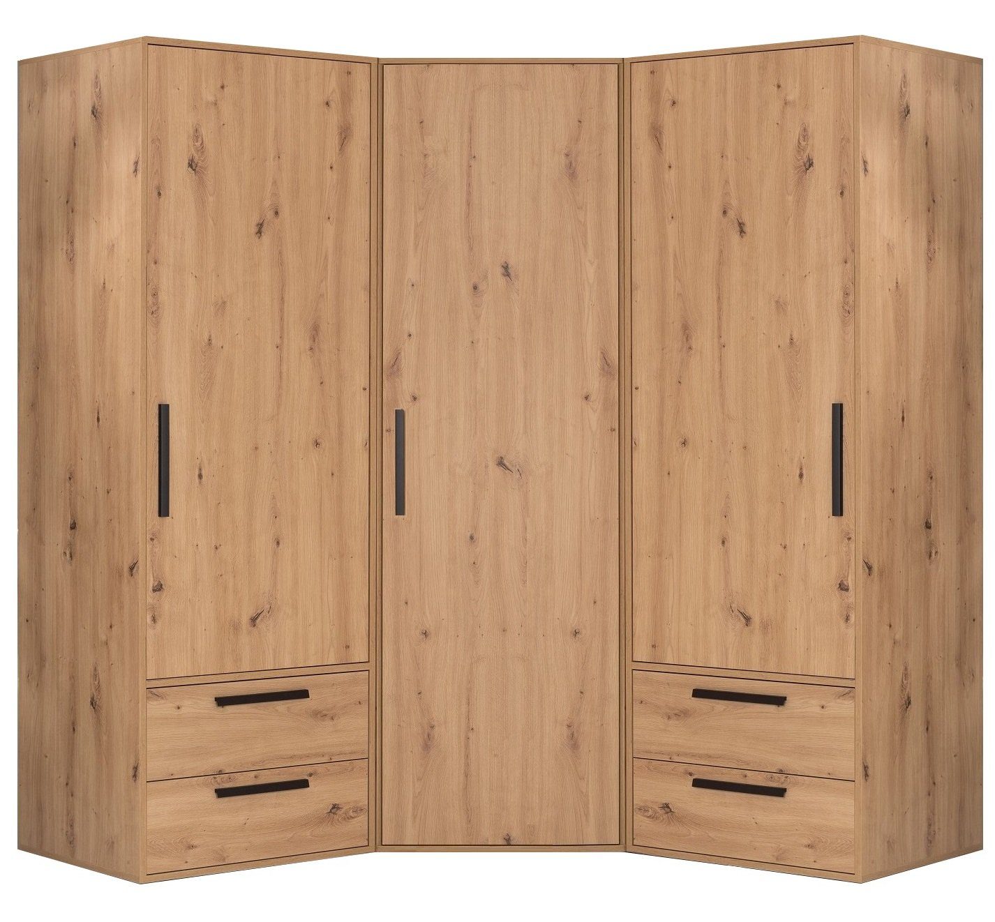 Garderoben set Arti D - ein Echschrank mit viel Stauraum, Einlegeböden und Kleiderstangen, zwei eintürige Kleiderschränke mit Schubladen, Einlegeböden und Kleiderstange