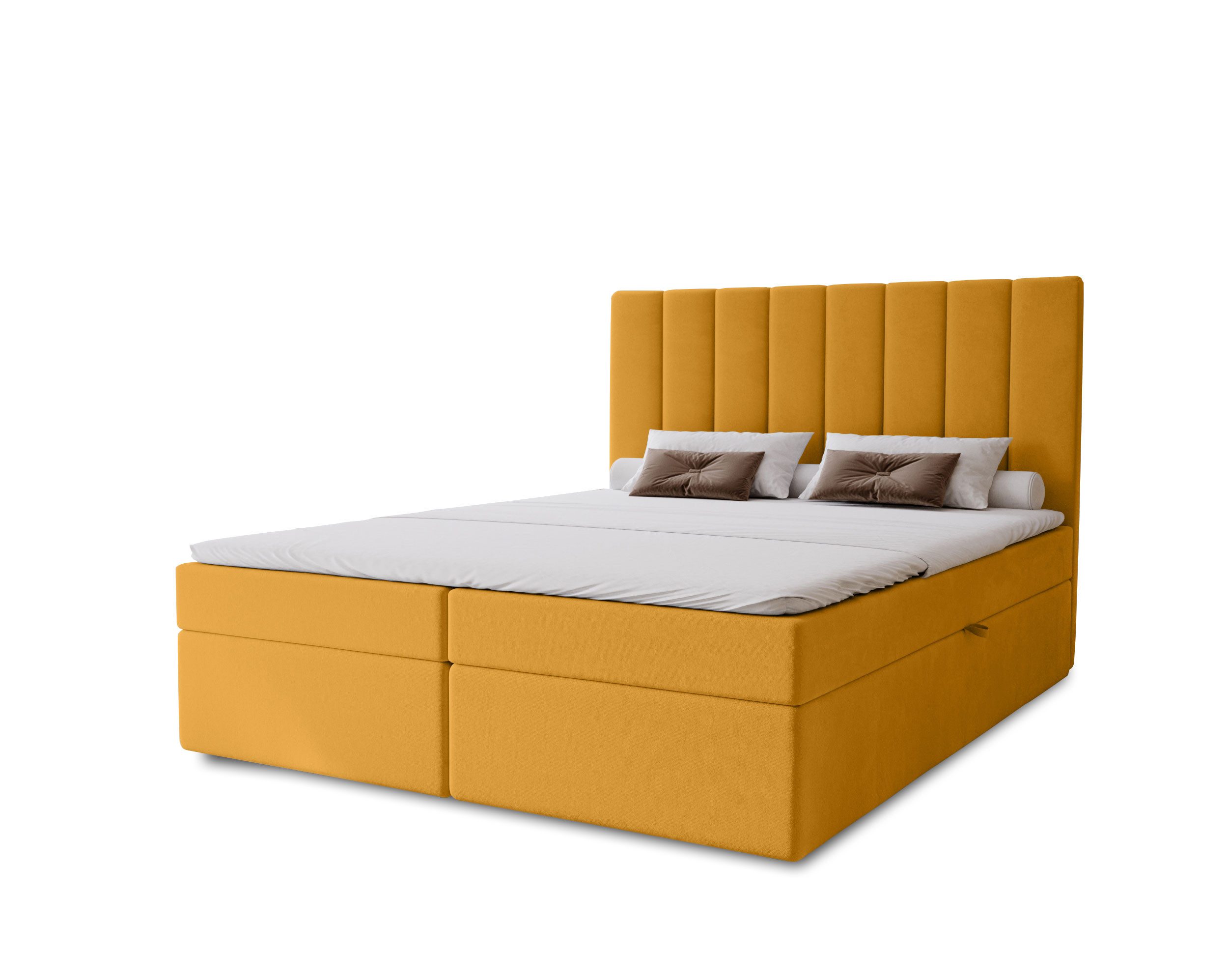 Das Boxspringbett NERO ist mit zwei großen Bettkästen ausgestattet, die durch einen praktischen Hebemechanismus nach vorne leicht geöffnet werden können. Perfekt zur Aufbewahrung von Bettwäsche, Decken und Kissen.