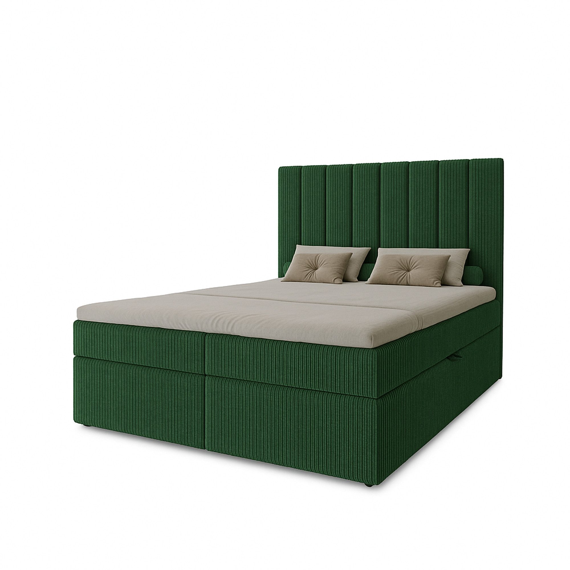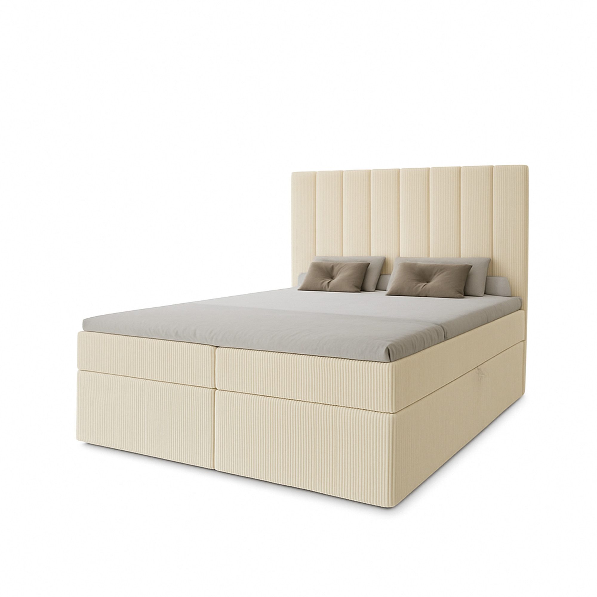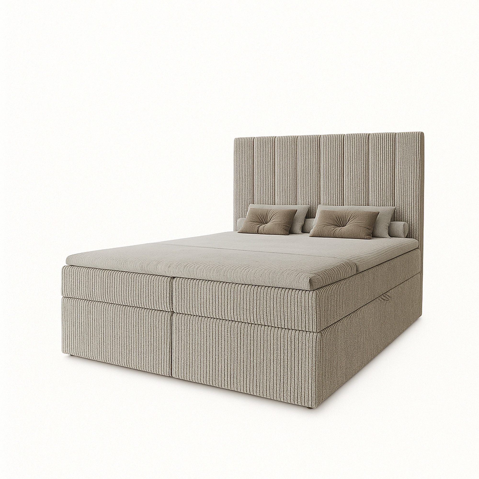Das Boxspringbett NERO MIL ist mit zwei großen Bettkästen ausgestattet, die durch einen praktischen Hebemechanismus leicht geöffnet werden können. Perfekt zur Aufbewahrung von Bettwäsche, Decken und Kissen.