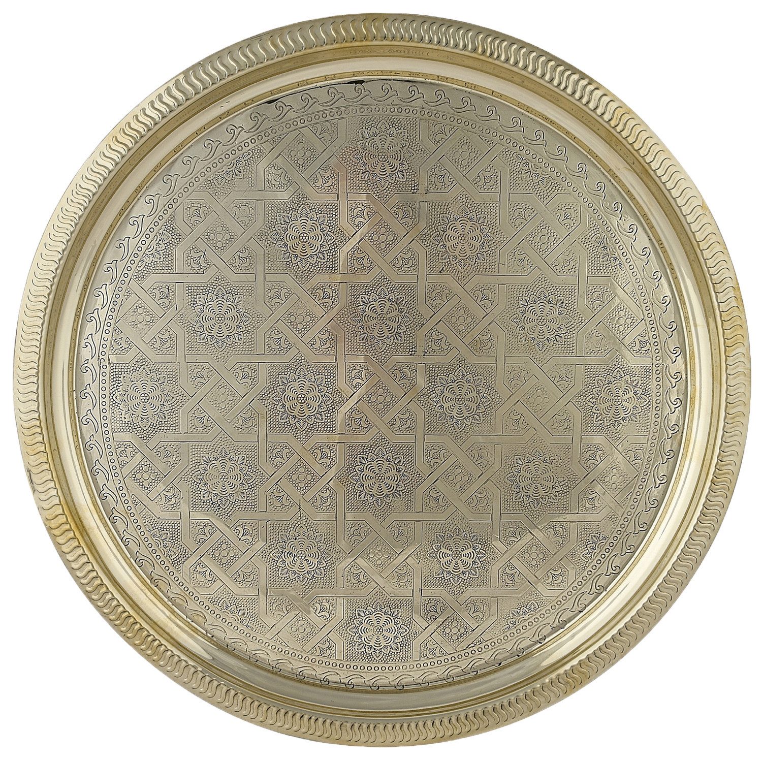 Marrakesch Orient & Mediterran Interior Dekotablett Orientalische Deko Tablett Serviertablett Kerzentablett Gold 38cm, Handarbeit