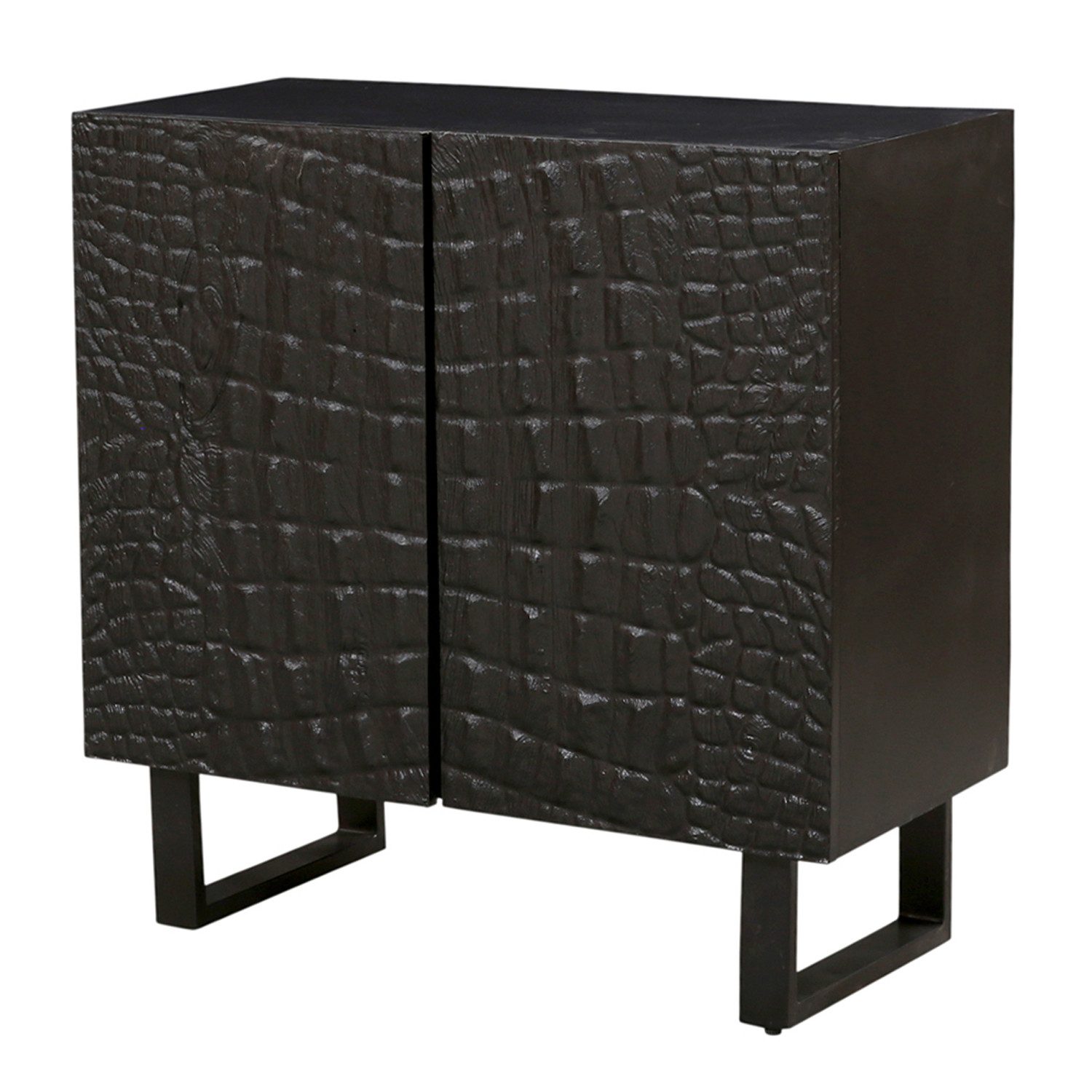 Diese Kommode kombiniert modernes Boho-Design mit Art-Déco-Elementen und minimalistischer Eleganz. Gefertigt aus hochwertigem Massivholz, besticht sie durch die kunstvoll geschnitzten Krokodilleder-Ornamente auf den Türen und die edlen Griffe. Das zeitlose Design macht sie zum stilvollen Hingucker in jedem Wohnraum.