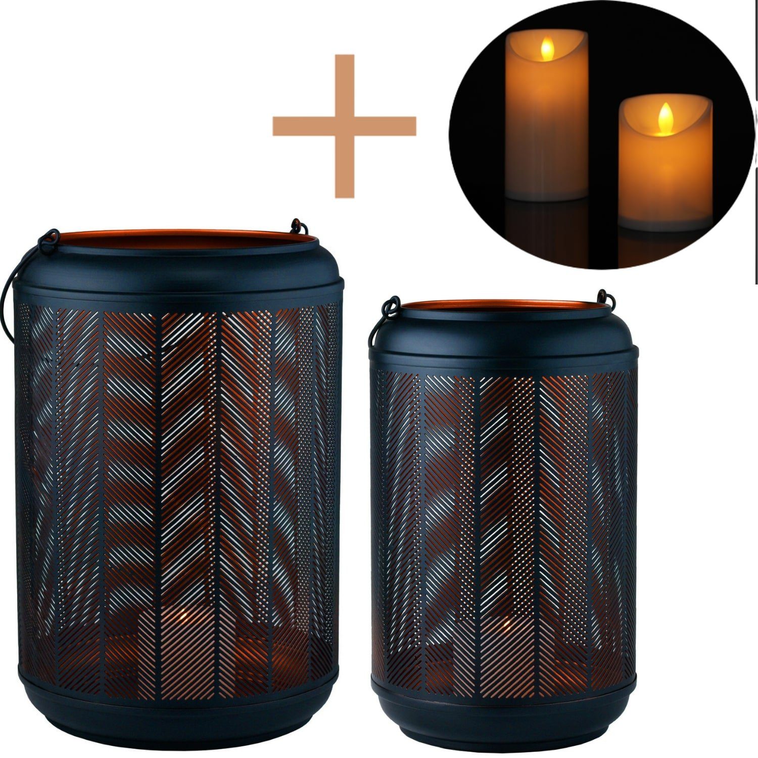2 Laternen mit LED Echtwachskerze