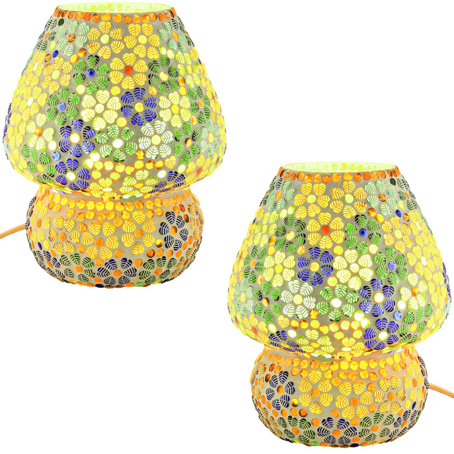 Marrakesch Orient & Mediterran Interior Nachttischlampe 2er Set Boho Deko Tischlampe Nachtischlampe aus Muscheln Mosaik -3-, Handarbeit