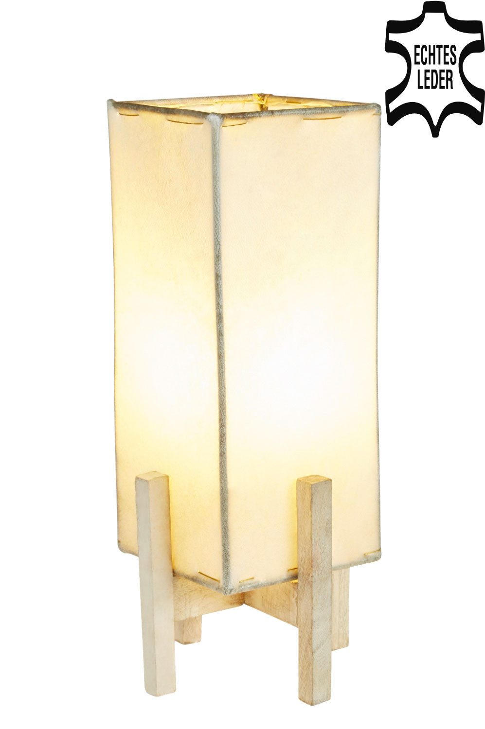 Ledertischlampe Janka Natur mit weiem Gestell