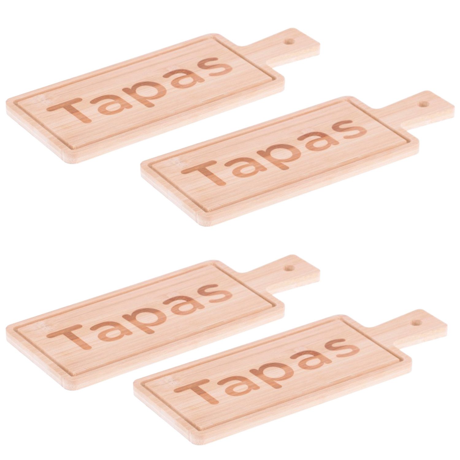 4er Set Tapas Brett Bako eckig Bereichern Sie Ihre kulinarischen Erlebnisse mit unserem stilvollen Servierbrett aus hochwertigem Bambus. Mit einem ansprechenden Tapas-Motiv und einem praktischen Griff ist dieses Servierbrett die perfekte Ergänzung für Ihre Tapas-Abende und Snack-Präsentationen. Das großzügige Format von 23x9cm bietet ausreichend Platz für eine Vielzahl von Köstlichkeiten. Der integrierte Griff erleichtert das Tragen und Servieren, während die Aufhänge Möglichkeit für eine platzsparende Aufbewahrung sorgt. Unser Servierbrett ist nicht nur stilvoll, sondern auch umweltfreundlich, da es aus nachhaltigem Bambus in hellem Braun gefertigt ist. Bringen Sie spanisches Flair in Ihre Küche und Ihre Gäste werden von der Eleganz und Funktionalität dieses Servierbretts begeistert sein. Genießen Sie Tapas und Snacks auf eine ganz neue Art und Weise! • Größe: 23cm lang und 9cm breit • Farbe: Braun | Material: Bambus Holz | Lieferumfang: 4 Bretter