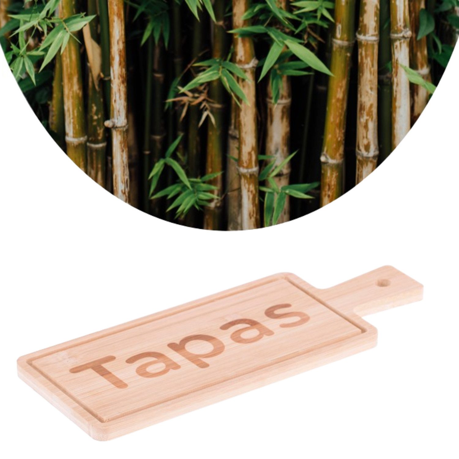 Bereichern Sie Ihre kulinarischen Erlebnisse mit unserem stilvollen Servierbrett aus hochwertigem Bambus. Mit einem ansprechenden Tapas-Motiv und einem praktischen Griff ist dieses Servierbrett die perfekte Ergnzung fr Ihre Tapas-Abende und Snack-Prsentationen.