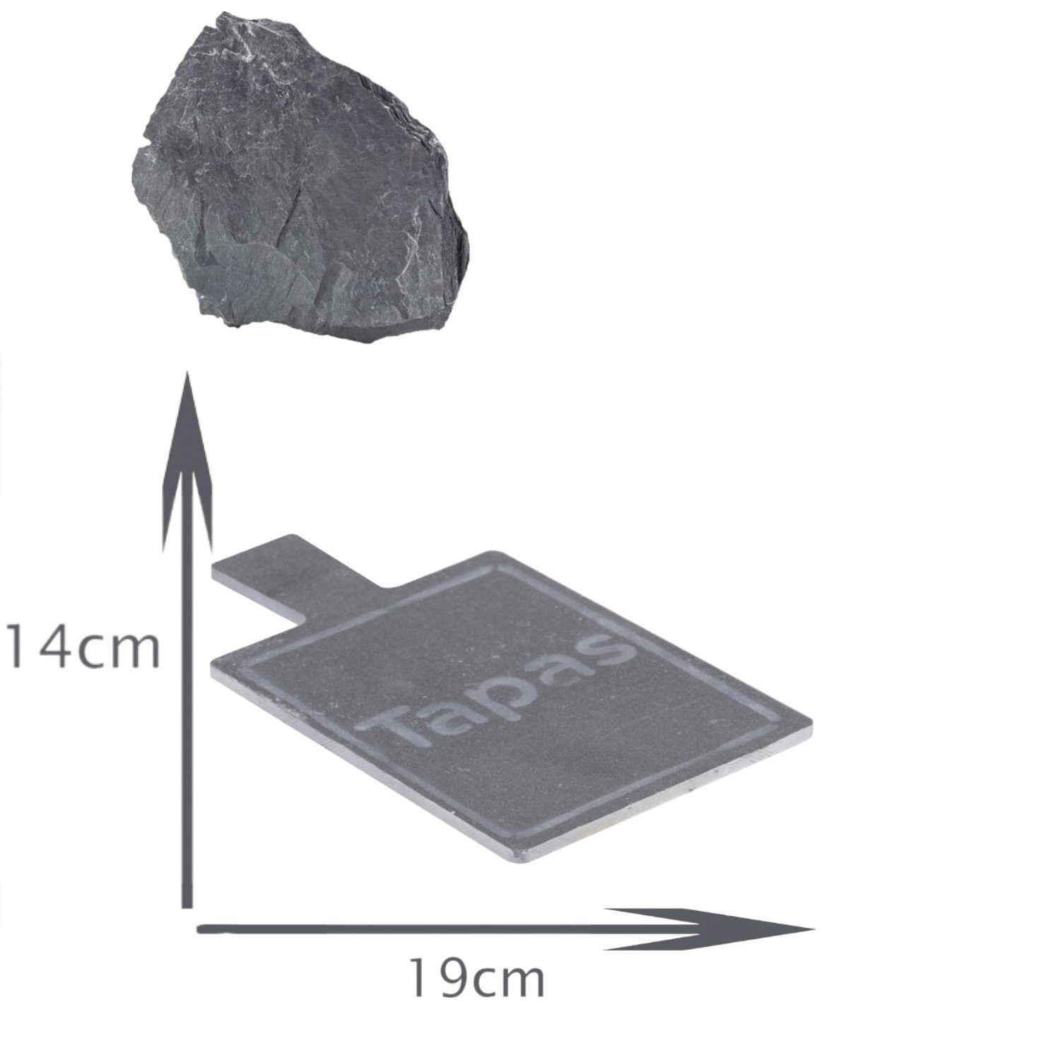 Unser Servierbrett ist nicht nur stilvoll, sondern auch umweltfreundlich, da es aus nachhaltigem Schiefer in drunklen grau gefertigt ist. Bringen Sie spanisches Flair in Ihre Kche und Ihre Gste werden von der Eleganz und Funktionalitt dieses Servierbretts begeistert sein. Genieen Sie Tapas und Snacks auf eine ganz neue Art und Weise!