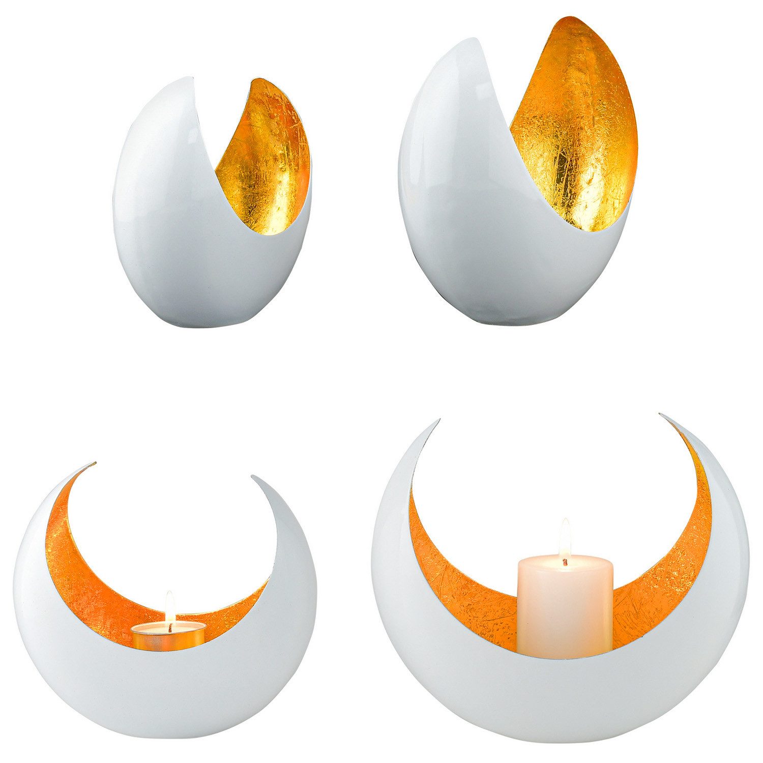 2er Set Teelichthalter Maputo weiß Entdecken Sie mit unserem Teelichthalter aus Metall die perfekte Kombination aus Eleganz und Vielseitigkeit. Die Windlichter in zeitlosem Gold innen verleihen Ihrer Tischdeko, sei es bei Hochzeiten oder romantischen Abenden, einen Hauch von Aesthetk-Chic. Diese Kerzenhalter eignen sich hervorragend für kleine Stumpen Kerzen und Teelichter und setzen dabei auf hochwertiges Material für sicheren Stand und einzigartige Optik. Diese Windlichter mit Boden bringen skandinavisches Flair in Ihr Wohnzimmer und sorgen für eine gemütliche Atmosphäre. Dieses Set ist nicht nur eine Dekoration, sondern auch eine kreative Geschenkidee. Verwenden Sie die kerzenhalter als Gastgeschenke oder zum Gießen eigener Kerzendosen. Tauchen Sie mit den modern gestalteten Metallwindlichtern in den Charme des Landhausstils ein und schaffen Sie eine einladende Atmosphäre. Ob als Kerzenbehälter, Kerzenständer oder Votivkerzenhalter – dieses Set bietet eine Vielzahl von Nutzungsmöglichkeiten. Die Teelichthalter sind nicht nur dekorativ, sondern auch funktional und können als stilvolle Dekoobjekte auf der Fensterbank verwendet werden. Mit unserem Teelichthalter aus Metall setzen Sie Akzente in Ihrem Zuhause und schaffen eine stimmungsvolle Tischdekoration. Gönnen Sie sich diesen Hauch von Luxus und verleihen Sie Ihren Abenden das gewisse Etwas – ob beim Dating oder einfach beim Entspannen im Wohnzimmer. Warmer Lichtschein: Die goldene Innenseite dieses orientalischen Windlichtes reflektiert warmes Licht, das eine entspannende Atmosphäre schafft. Verwandle deine Zimmer oder Wohnzimmer in eine gemütliche Oase der Ruhe - Größe: 19 x 10cm & 16 x 9cm
