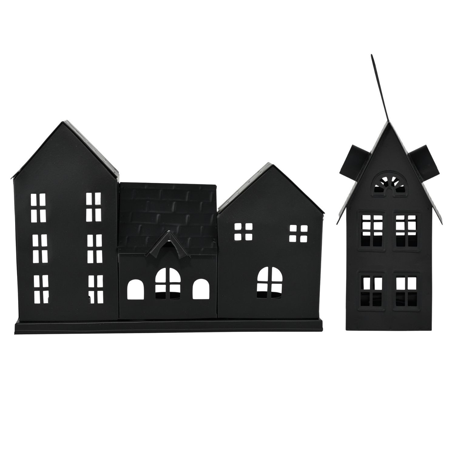 Der 2er Set Teelichthalter Häuserzeile Calibri schwarz bringt skandinavische Gemütlichkeit und zeitlose Eleganz in Ihr Zuhause. Die drei verbundenen Häuser mit detailreicher Gestaltung schaffen ein romantisches Lichtspiel, wenn ein Teelicht im Inneren brennt. Handgefertigt aus Metall und in mattem schwarz veredelt, fügt sich dieses Wohnaccessoire harmonisch in viele Einrichtungsstile ein.