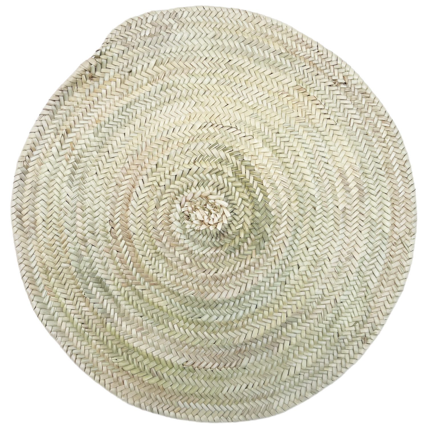 Boho Style Teppich Wanddeko Rund Pampa 60cm Dieser handgeknüpfte runde Teppich (60cm Durchmesser) aus Palmenblättern und Raffia wurde von der Atlasgebirge Frauenkooperative in der Nähe von Marrakesch in Marokko hergestellt. Jeder Teppich ist ein Unikat und im trendigen Boho-Stil gestaltet, um Ihrem Zuhause eine warme und gemütliche Atmosphäre zu verleihen. Der Teppich besteht aus 100% Naturfaser und ist biologisch abbaubar, langlebig und belastbar. Er ist schmutzabweisend, strapazierfähig und Всеrgiker freundlich. Dies macht ihn zur perfekten Wahl für alle Wohnbereiche, darunter Wohnzimmer, Schlafzimmer, Badezimmer, Küche und Flur. Neben der Verwendung als Bodenbelag kann der Teppich auch als Wanddekoration genutzt werden, um jedem Raum ein einzigartiges Flair zu verleihen. Der Teppich ist vielseitig und kann auch im Freien als Balkonteppich oder Gartenteppich verwendet werden, um Ihrem Outdoor-Bereich eine gemütliche Note zu verleihen. Dieser Teppich ist handgeknüpft und die Produktion unterstützt die Atlasgebirge Frauenkooperative, indem sie Arbeitsplätze für Frauen schafft und traditionelle Handwerkskunst bewahrt. Der Teppich ist einzigartig und sorgt für eine einladende Atmosphäre in Ihrem Zuhause. Bestellen Sie noch heute Ihren handgeknüpften Teppich und genießen Sie die Schönheit und den Charme der marokkanischen Handwerkskunst! • Größe: 60cm Durchmesser und 1cm dick. • Material: Echte Palmenblätter | Farbe: Beige Natur.