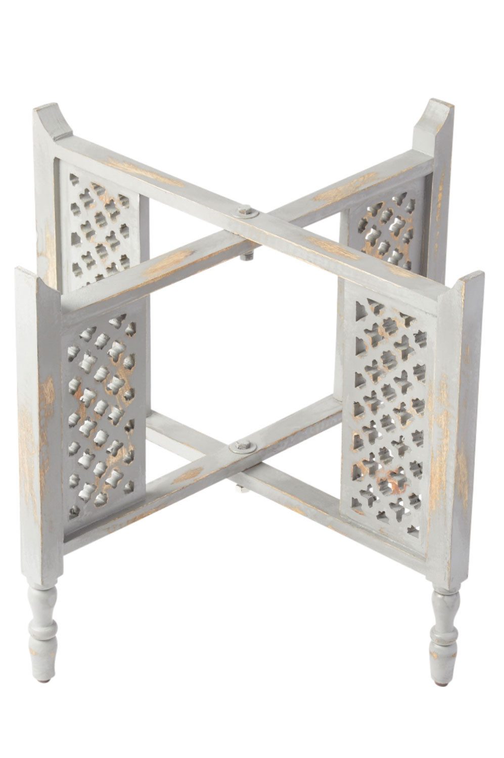 Das Untergestell ist aus massivem Holz, im orientalischen Stil sehr aufwendig und traditionell Handgefertigt, verziert mit den typischen aus Marrakesch bekannten Muster Moucharabia.