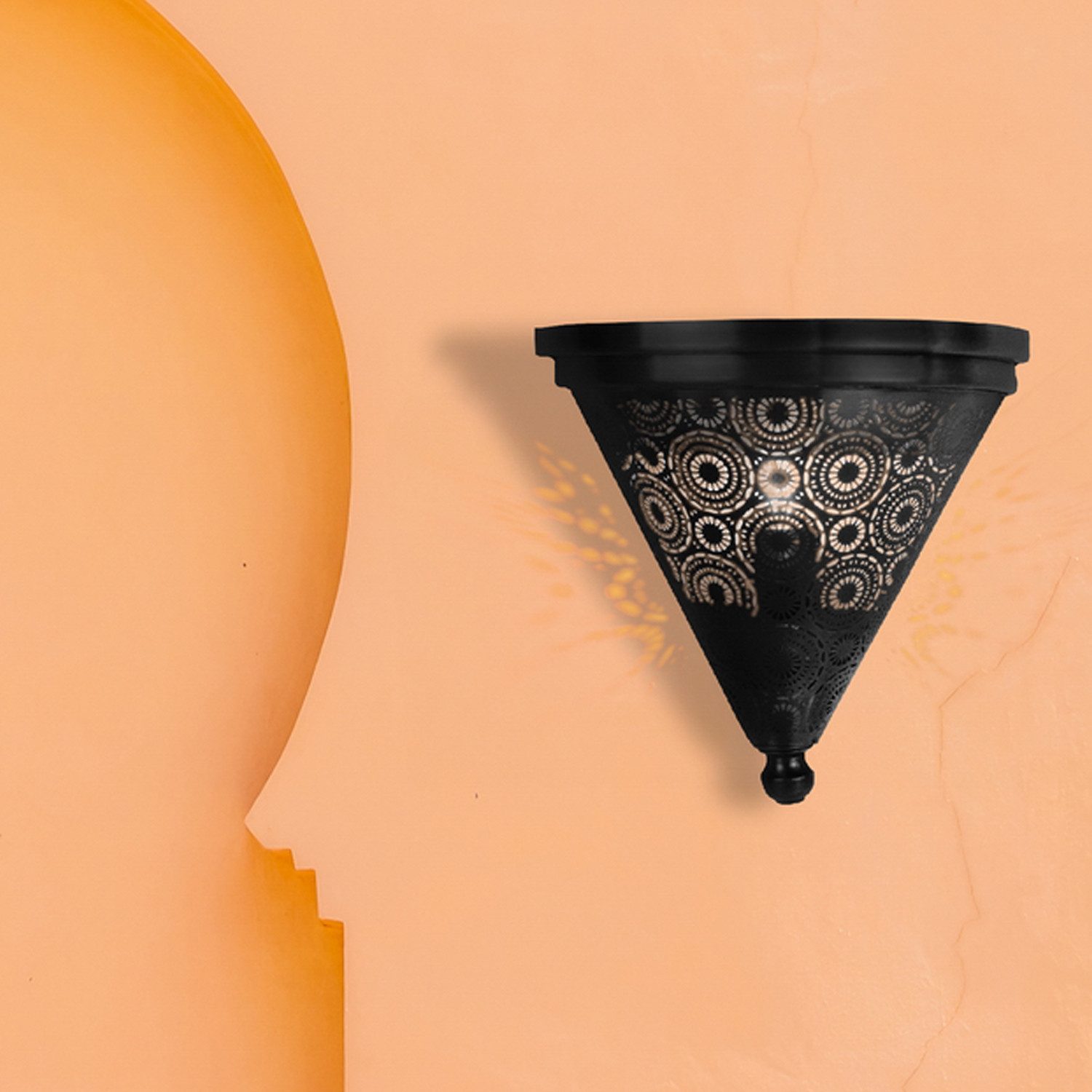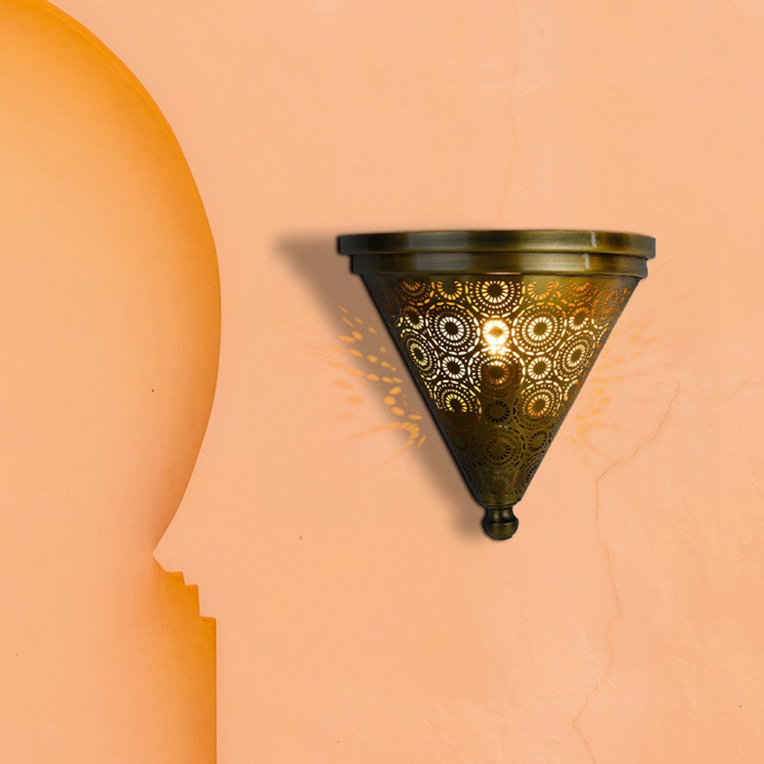 Bringen Sie mit unserer handgemachten orientalischen marokkanischen Wandlampe aus Metall einen Hauch von Exotik und Eleganz in Ihr Zuhause.