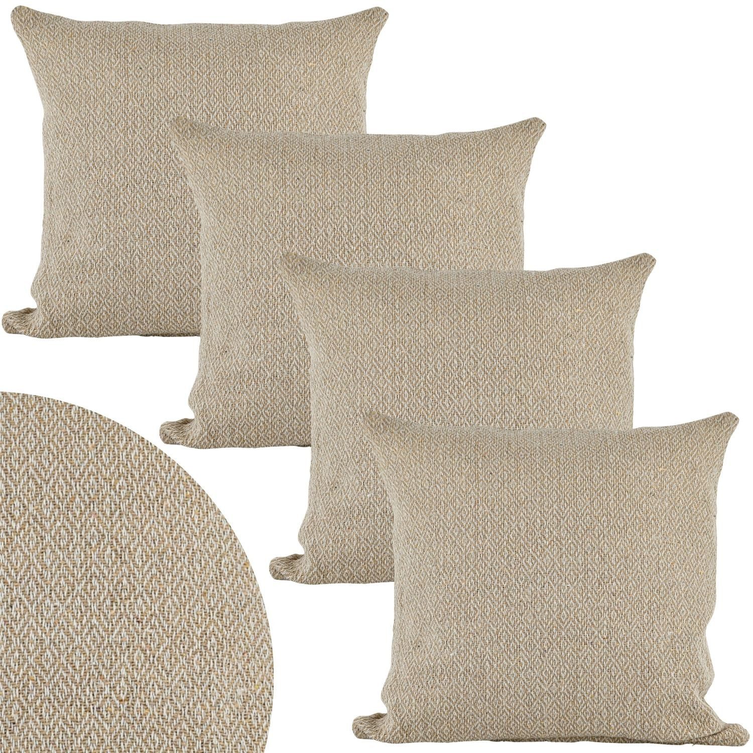 Stilvolles Duo für dein Zuhause: Das 4er Set Kissenbezüge Calix Beige bringt mit seinem sanften Creme-Ton und der feinen Webstruktur natürliche Wärme in jeden Raum. Gefertigt aus 100% Baumwolle und mit verdecktem Reißverschluss sind sie praktisch, langlebig und pflegeleicht.