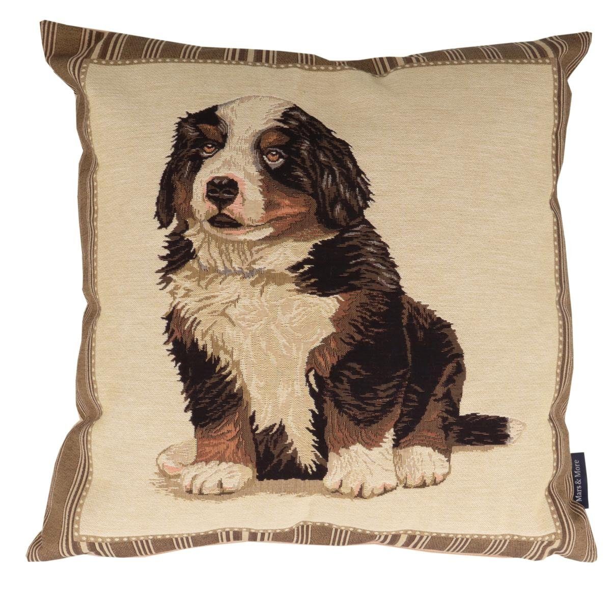 Mars & More Gobelin Kissen Berner Sennenhund ca. 45x45 cm Wer kann DIESEM treuen Hundeblick widerstehen? So ein Berner Sennenhund Welpe versteht es durchaus, wie man jemandem sein Herz abjagd. Vor allem, wenn er in so hinreißender Gobelin-Qualität das Zeug dazu hat ein Dauer-Hingucker zu werden auf dem heimischen Sofa oder dem Lieblings-Sessel. Maße Kissenbezug: ca. 45 x 45 cm (HxB) Material Kissenbezug: 86% Baumwolle, 6% Polyester, 8% Polyamide Kissenbezug hergestellt in Europa, mit Reißverschluss Waschhinweis für Kissenbezug: waschbar Maschinenwäsche bei 30°C, bügeln auf Stufe II Kissen auf der Vorderseite gewoben gemäß Abbildung, Rückseite einfarbig creme-beige. Material Innenkissen: 100 % Polyester Herstellerhinweis Innenkissen: all fillings have been tested and and comply with the furniture and furnishing (fire) (safety) regulations 1988 - fireproof - keep away from fire Anmerkung: Lieferung umfasst Kissenbezug und herausnehmbares Innenkissen Dieses Angebot gilt für ein Stück Gobelin Kissen Berner Sennenhund Welpe von Mars & More B.V., ca. 45x45 cm, Artikel MM-EVKSHBSN, ohne Deko oder sonstigem Zubehör.