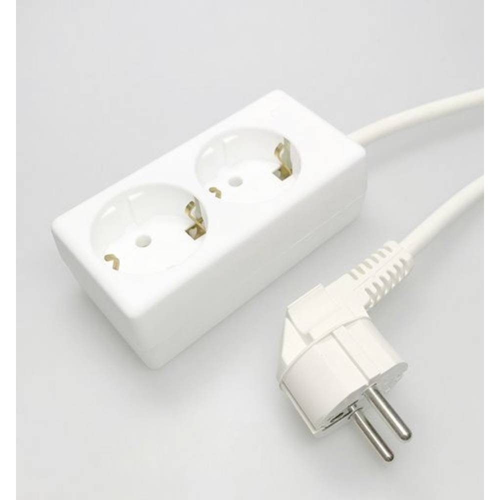 Eigenschaften | Betriebsspannung: 230 V · Einsatzort: Innenbereich · Herstellerfarbe: Weiß · Kabel-Typ nach DIN/VDE: H05VV-F 3G 1,5 mm² · Kabellänge: 1.50 m · Material: Kunststoff · Netzstecker-Typ: Schutzkontakt · Produktabmessung, Breite: 56 mm · Produktabmessung, Höhe: 41 mm · Produktabmessung, Длина: 111 mm · Schutzart: IP20 · Steckdosen-Anzahl: 2 |