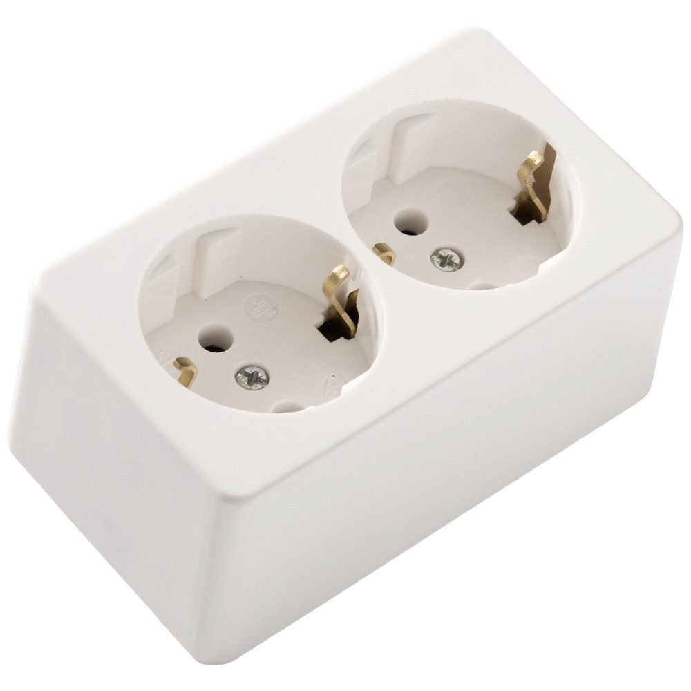 Wiederanschließbare Ausführung für flexible oder starre Leitungen H05VV-F 3G1,5 mm². Mehrfachkupplungsdose Typ F mit Schutzkontakt zur Aufputzmontage