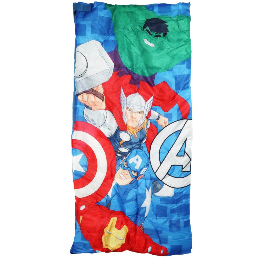 Mache jede Nacht zu einem Superhelden-Abenteuer mit dem Marvel Avengers Schlafsack. Perfekt für kleine Fans von Thor, Hulk, Iron Man und Captain America! Superhelden-Design: Lebhaftes Avengers-Motiv mit Thor, Hulk, Iron Man und Captain America. Komfortable Größe: Mit den Maßen von 70x140 cm bietet der Schlafsack genügend Platz für eine angenehme Nachtruhe. Einfach zu bedienen: Seitlicher Reißverschluss, der bis komplett unten aufgeklappt werden kann, ermöglicht ein einfaches Ein- und Aussteigen. Leicht und pflegeleicht: Hergestellt aus 100% Polyester für hohen Komfort und einfache Reinigung. Vielseitig einsetzbar: Ideal für Übernachtungen bei Freunden, Camping oder als bequeme Decke zu Hause. Mit diesem Schlafsack sind kleine Avengers-Fans bestens ausgerüstet für jede Übernachtung. Perfekt für aufregende Träume und erholsamen Schlaf!