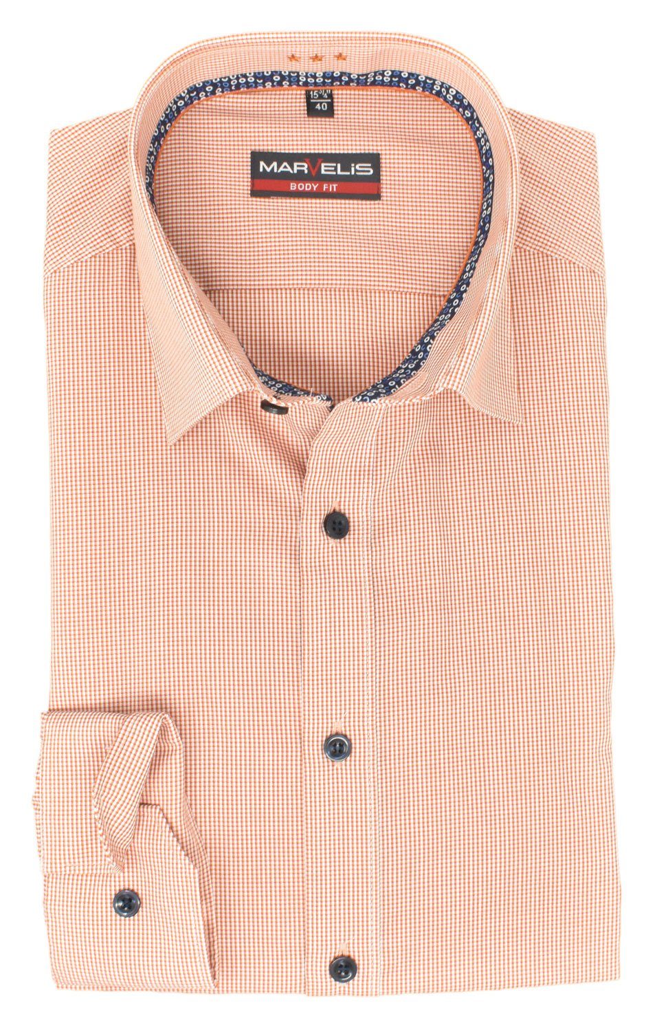 MARVELIS Langarm-Hemd in rot. Das besonders bügelleichte Businesshemd ist hervorragend verarbeitet und bietet einzigartige Trageeigenschaften. Es ist körpernah geschnitten (stark tailliert), besonders bügelleicht und aus reiner Baumwolle ohne Brusttasche.