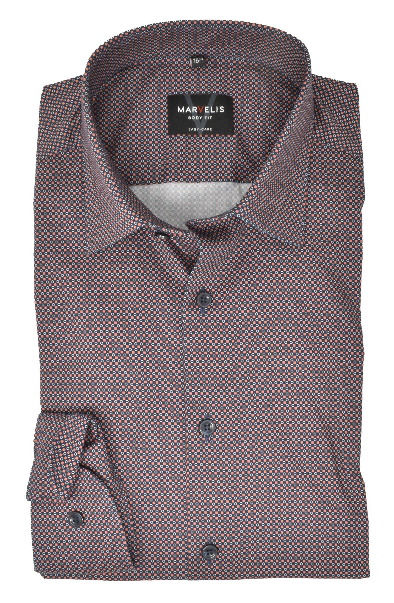 MARVELIS Hemd mit verlängerten Ärmellängen in rot/bordeaux. Es ist körpernah geschnitten (stark tailliert), besonders bügelleicht und aus reiner Baumwolle ohne Brusttasche.