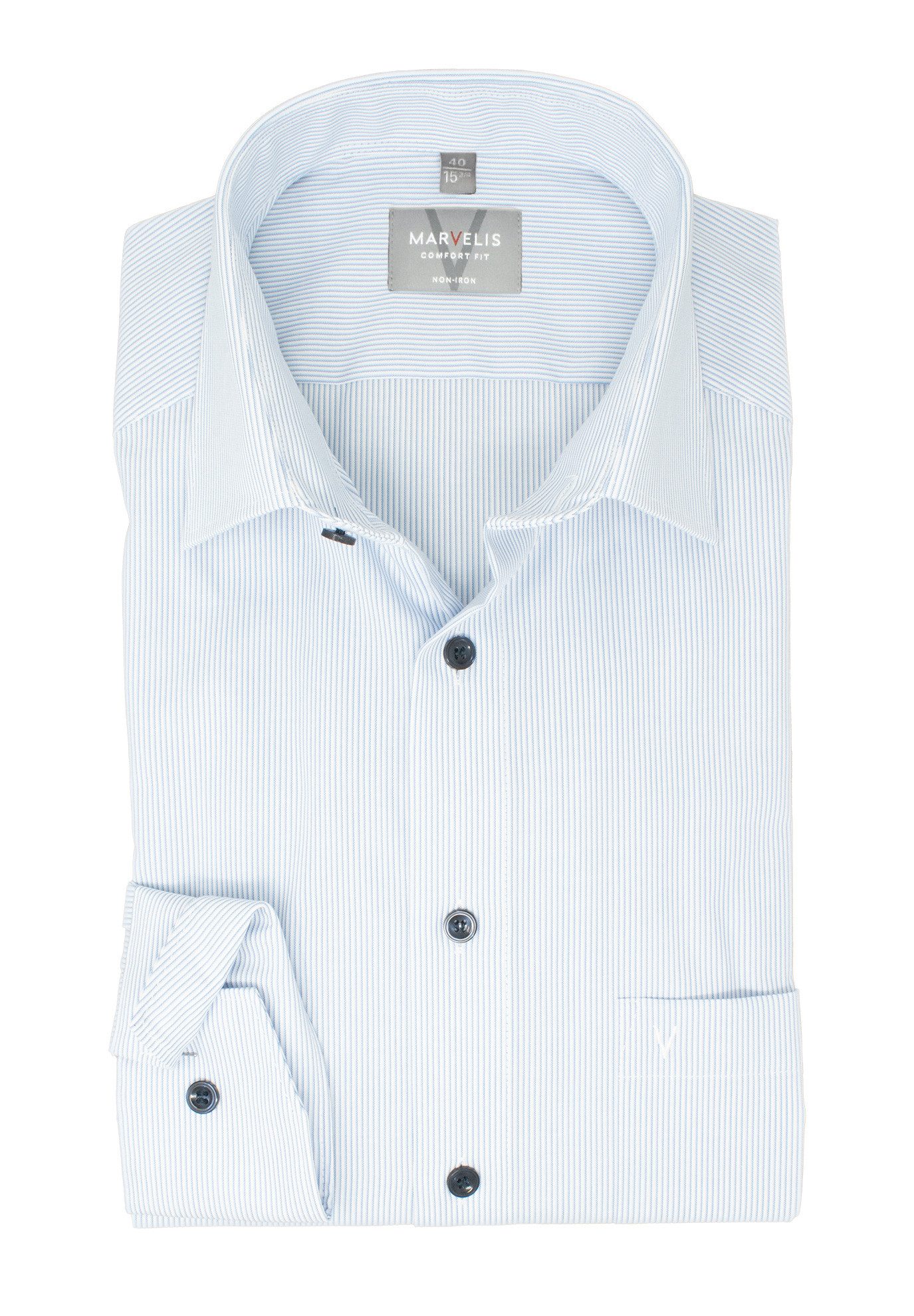 MARVELIS Langarm-Hemd in bleu. Das bügelfreie Hemd ist hervorragend verarbeitet und bietet optimale Trageeigenschaften. Mit geradem Schnitt hat es eine bequeme Passform.