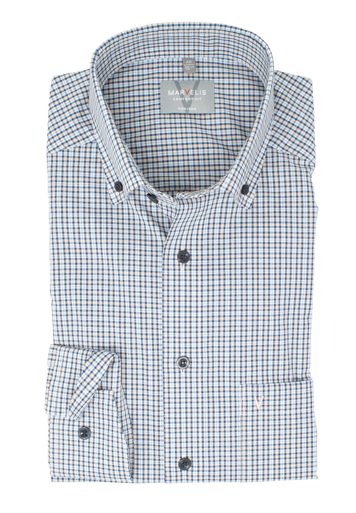 MARVELIS Langarm-Hemd in beige. Das bügelfreie Hemd ist hervorragend verarbeitet und bietet optimale Trageeigenschaften. Mit geradem Schnitt hat es eine bequeme Passform.