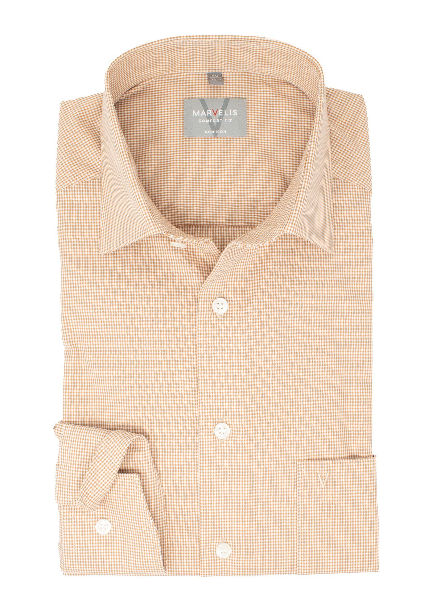 MARVELIS Langarm-Hemd in braun. Das bügelfreie Hemd ist hervorragend verarbeitet und bietet optimale Trageeigenschaften. Mit geradem Schnitt hat es eine bequeme Passform.