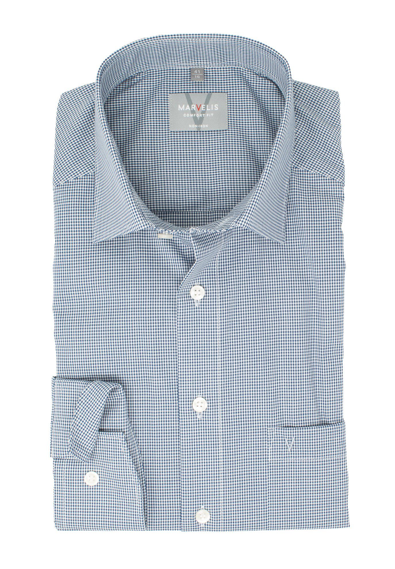 MARVELIS Langarm-Hemd in dunkelblau. Das bügelfreie Hemd ist hervorragend verarbeitet und bietet optimale Trageeigenschaften. Mit geradem Schnitt hat es eine bequeme Passform.