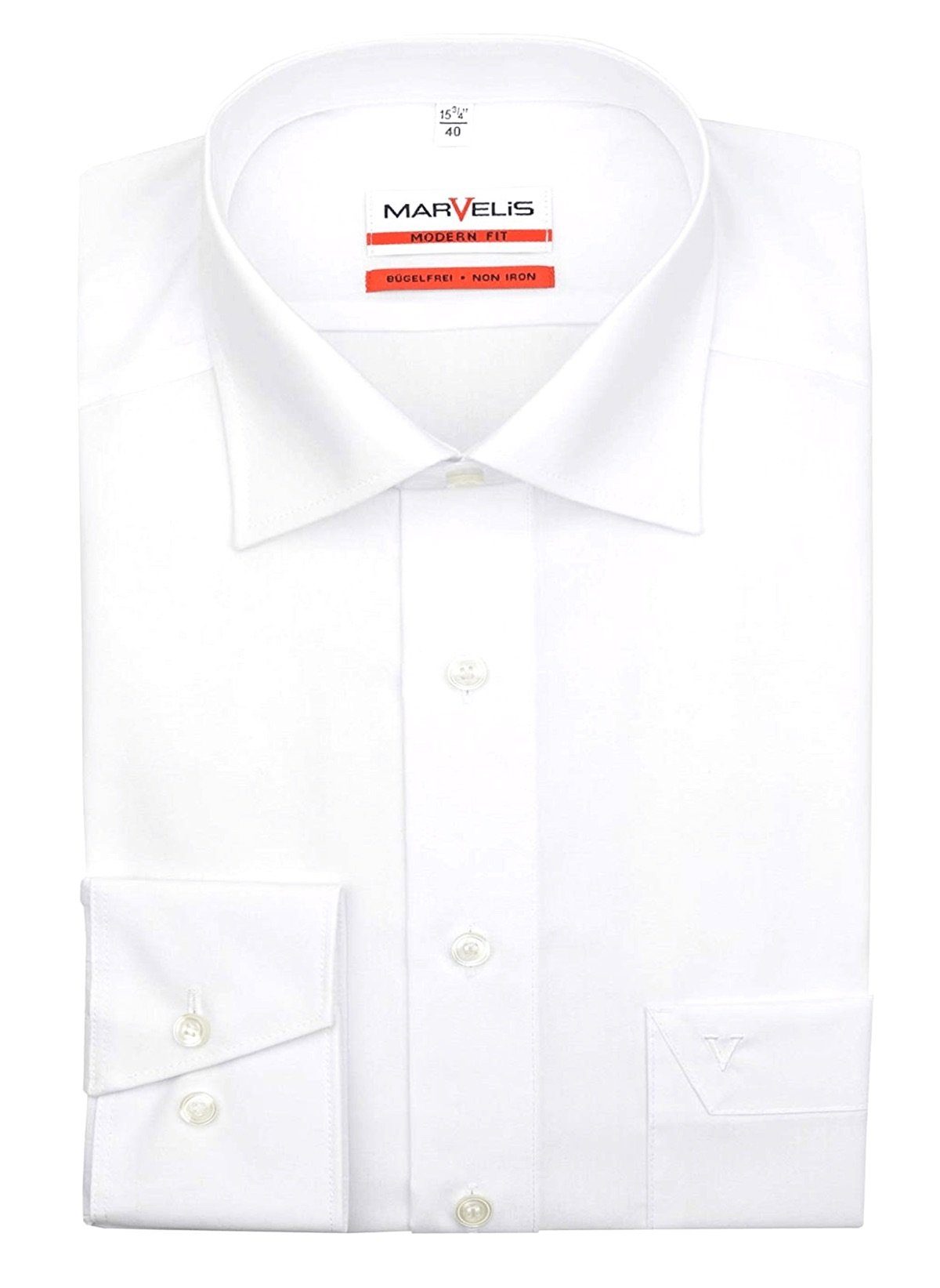 Das Marvelis Herren Businesshemd Modern Fit mit einem New Kentkragen, einfarbig. Das leicht taillierte Business-Hemd ist knitter-/bügelfrei und steht für herausragende Trage- und Pflegeeigenschaften, kompromisslose Qualität sowie den höchsten Tragekomfort.