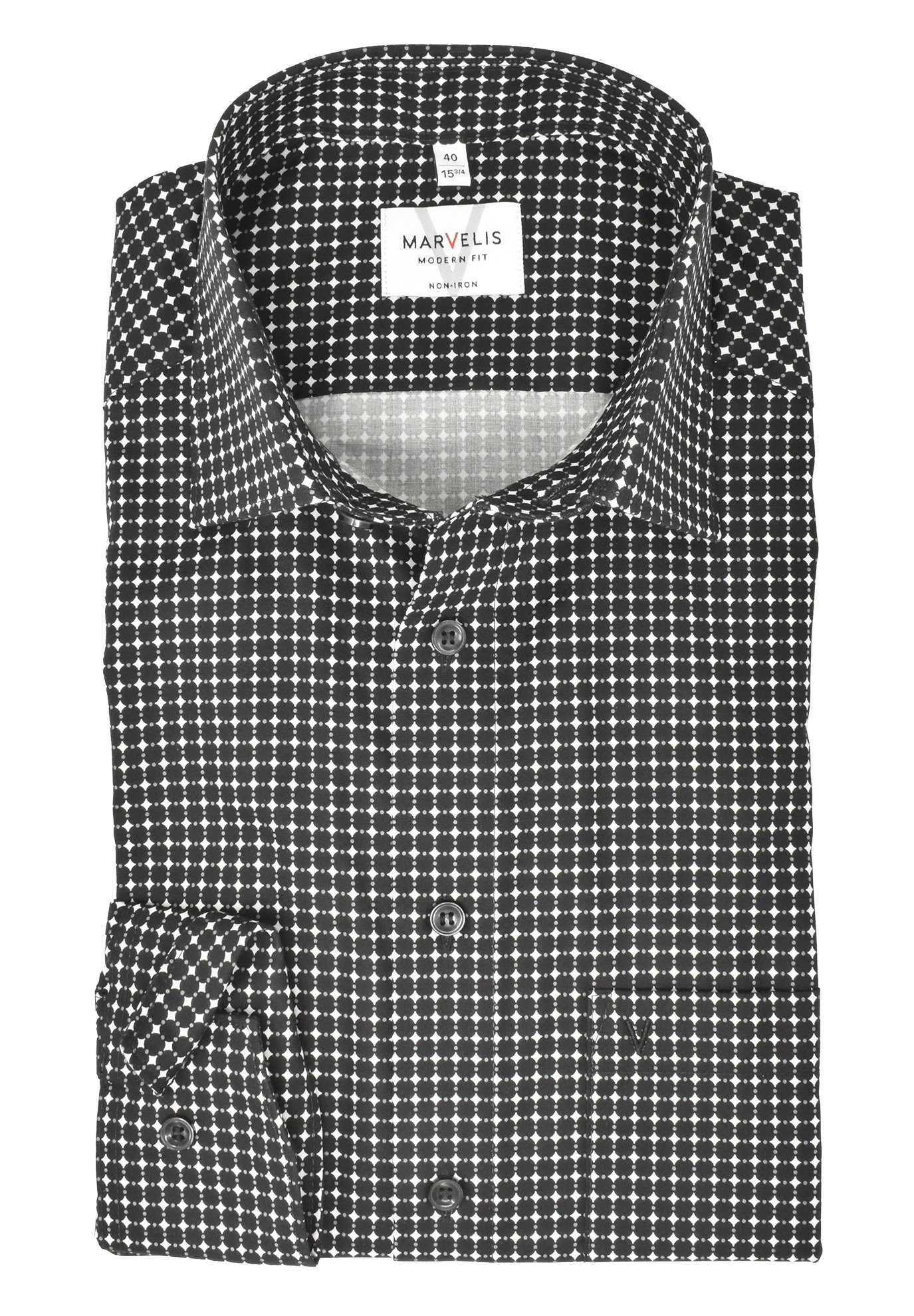 MARVELIS Hemd mit verlängerten Ärmellängen in schwarz. Das leicht taillierte Hemd ist knitter-/bügelfrei und steht für herausragende Trage- und Pflegeeigenschaften, fantastische Qualität sowie den höchsten Tragekomfort.
