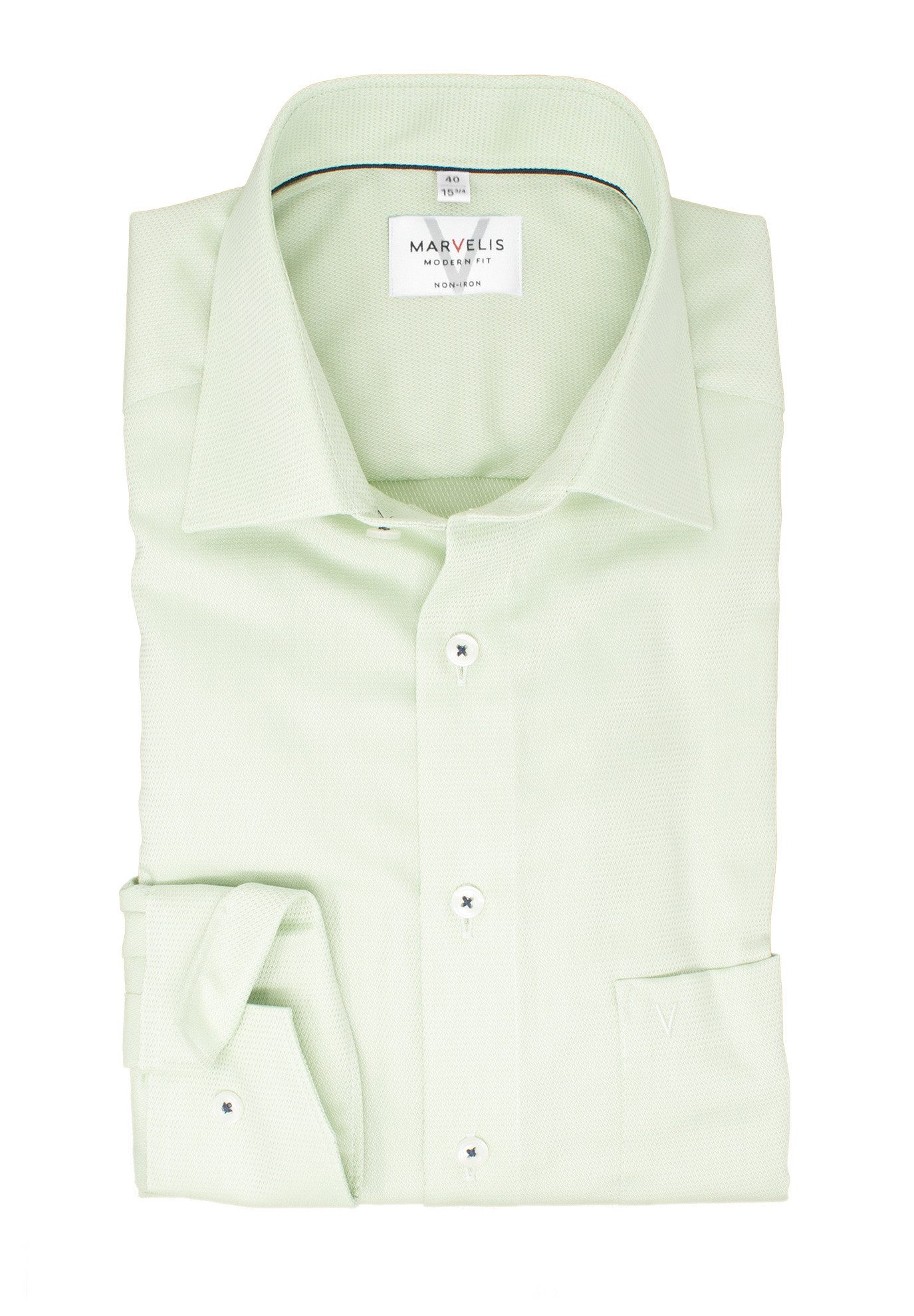MARVELIS Langarm-Hemd in grün. Das leicht taillierte Hemd ist knitter-/bügelfrei und steht für herausragende Trage- und Pflegeeigenschaften, fantastische Qualität sowie den höchsten Tragekomfort.