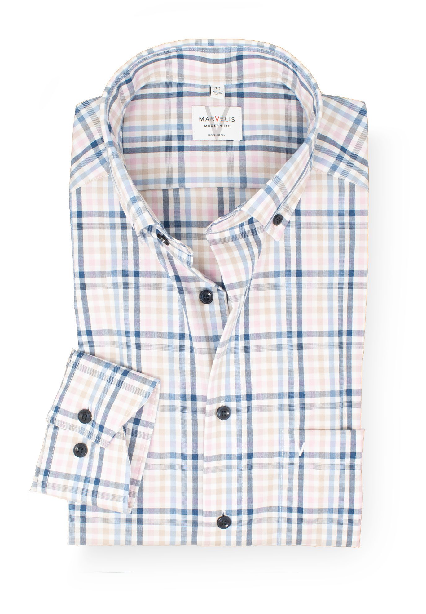 MARVELIS Langarm-Hemd in rosa. Das leicht taillierte Hemd ist knitter-/bügelfrei und steht für herausragende Trage- und Pflegeeigenschaften, tolle Qualität sowie den höchsten Tragekomfort.