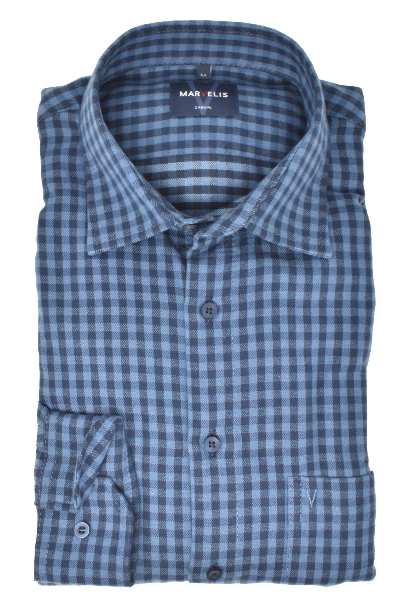 MARVELIS Langarm-Freizeit Hemd in blau. Das leicht taillierte Hemd ist knitter-/bügelfrei und steht für herausragende Trage- und Pflegeeigenschaften, einzigartige Qualität sowie den höchsten Tragekomfort.