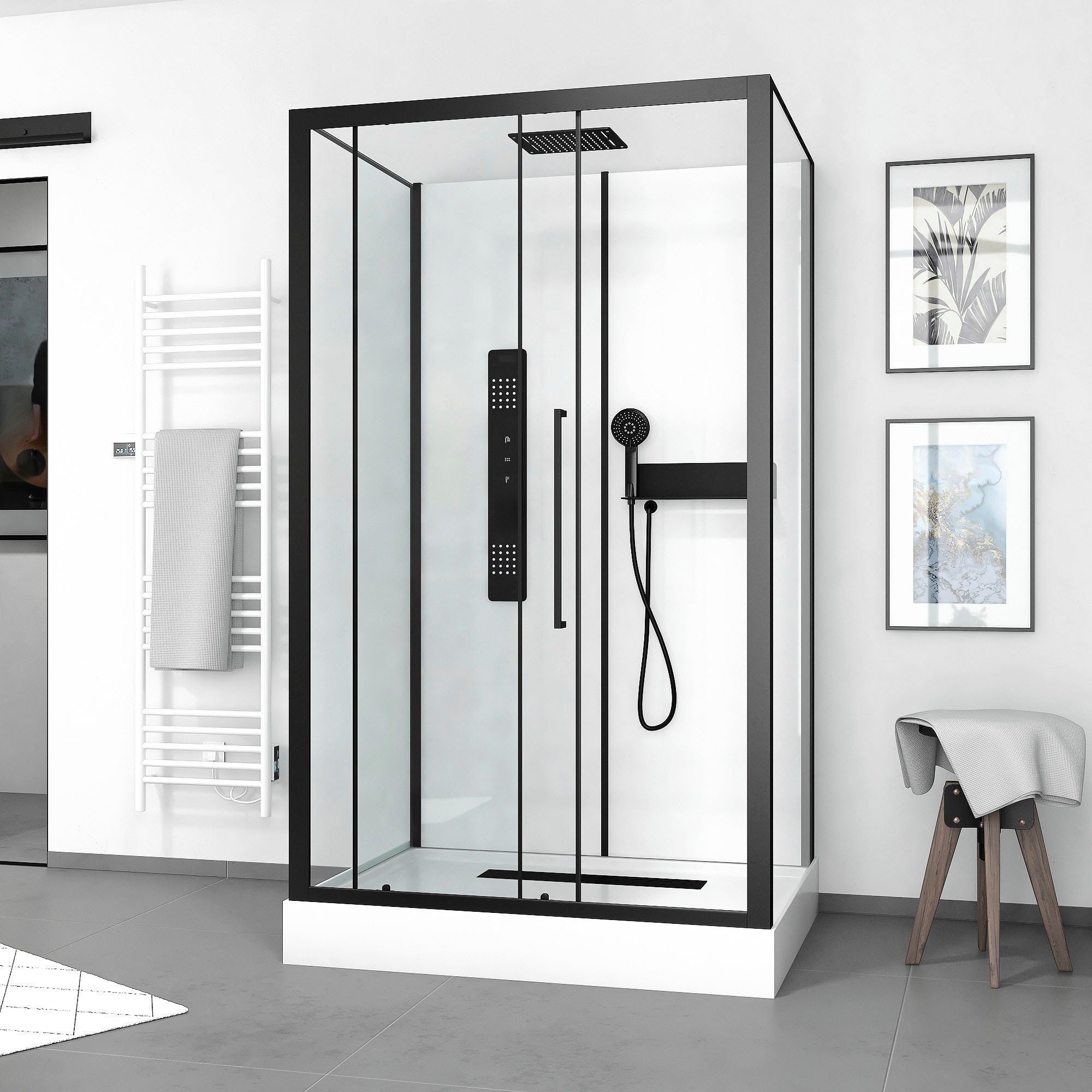 Lieferumfang | Duschtasse Einhebelmischer Seitenwände Türen |