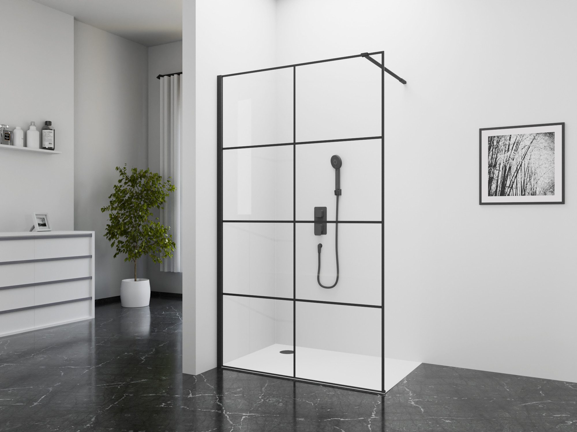 Marwell Walk-in-Dusche BLACK WINDOW, Einscheibensicherheitsglas, beidseitig montierbar, mit Stabilisationsbügel