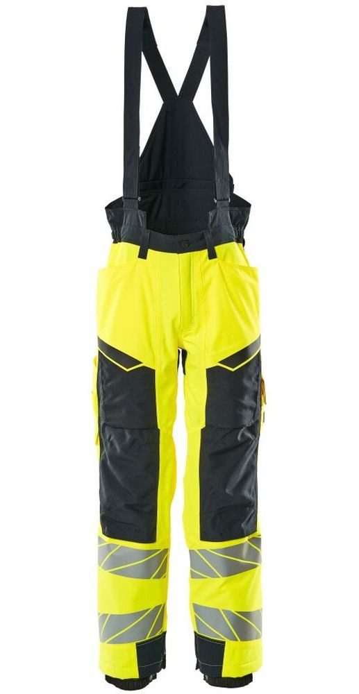 Fluoreszierend mit Reflexen. Hoch strapazierfähiger, atmungsaktiver, wind- und wasserdichter Stoff. Mit CLIMASCOT® Lightweight Insulation. Zweifarbig. Nähte sind verklebt. Hosenbeine sind ergonomisch geformt. Gürtelschlaufen. Hosenschlitz mit Reißverschluss. Vordertaschen. Gesäßtaschen, verstärkt und mit Patte. Beidseitig verdeckte Hammerschlaufen. Zollstocktasche mit Aramid®-Verstärkungen. Taschen mit Patte vorne am Oberschenkel. Schenkeltasche mit gefütterter Handy-Tasche, Magnetverschluss und integriertem ID-Kartenhalter. ID-Kartenhalter ist abnehmbar. Schulterträger aus kräftigem Elastik, regulierbar und abnehmbar. Erhöhter Bund an der Rückseite, zum besseren Schutz gegen Kälte. Bund mit elastischem Einsatz seitlich. Knietaschen aus strapazierfähigem CORDURA® (500 D), höhenregulierbar. Schneefang innen an den Beinen. Reißverschluss mit Wetterschutzleiste am inneren Beinabschluss. Zu diesem Modell empfehlen wir folgenden Knieschutz: 00418-100, 00718-100, 50451-916 oder 20118-915. Zertifiziert zusammen mit Kniepolstertyp SHORT oder LONG gemäß EN 14404.