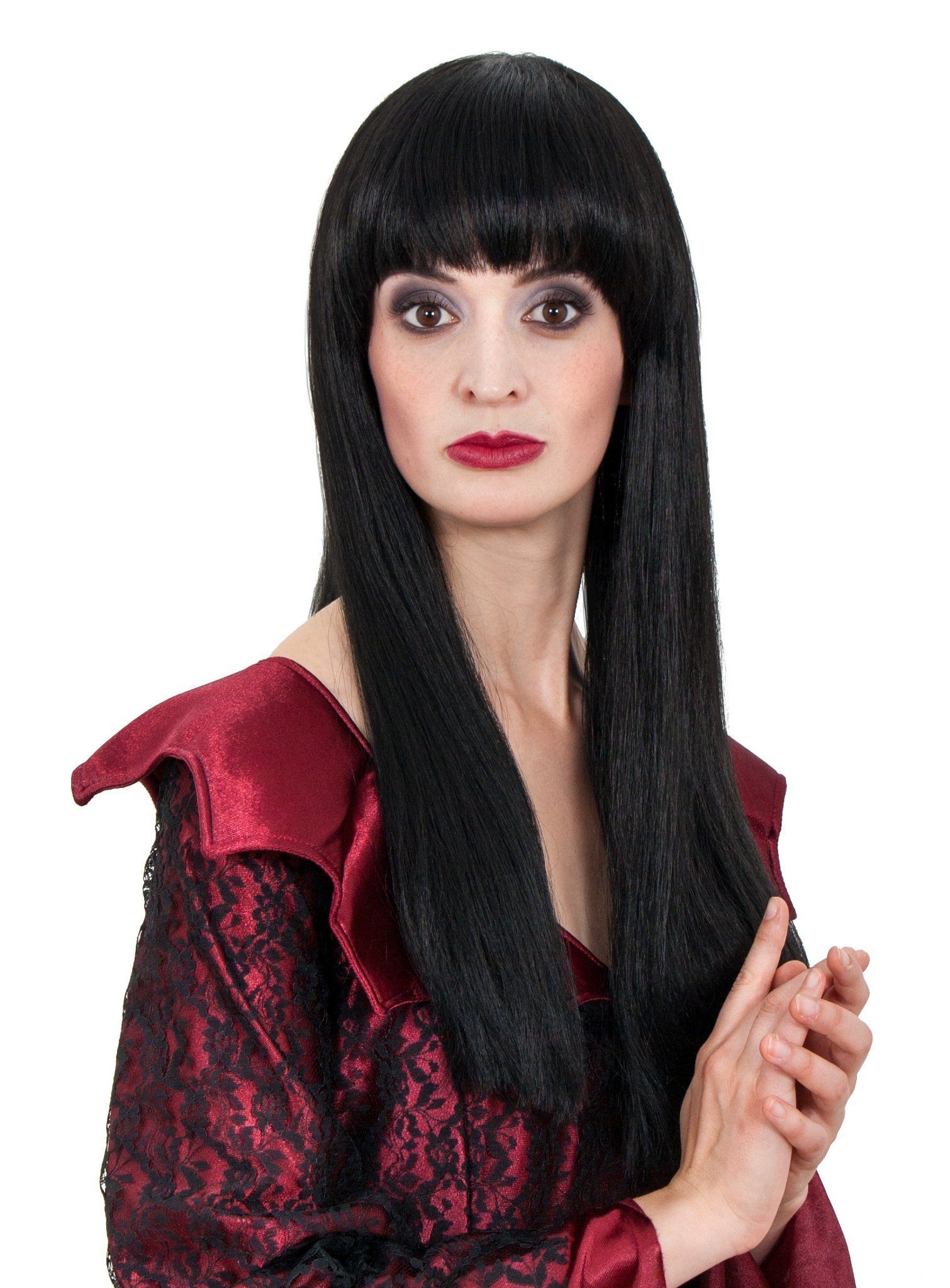 Maskworld Kostüm-Perücke Langhaarperücke schwarz mit Pony