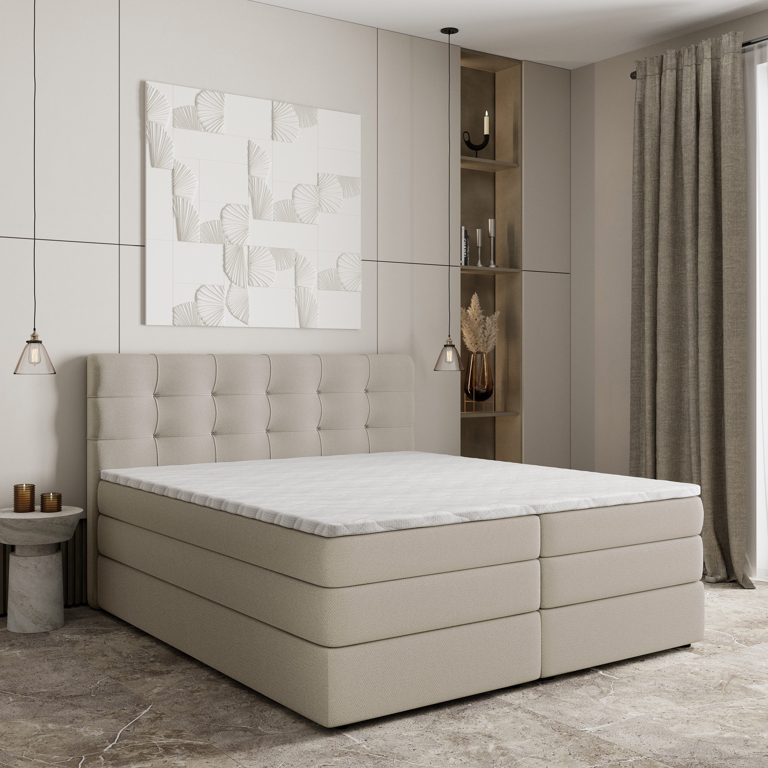 Das Kontinentalbett AREZI ist mit einem praktischen Topper ausgestattet, der den Schlafkomfort erheblich verbessert. Durch den Topper wird die Liegefläche noch weicher und angenehmer, was den Schlaf besonders entspannend macht.