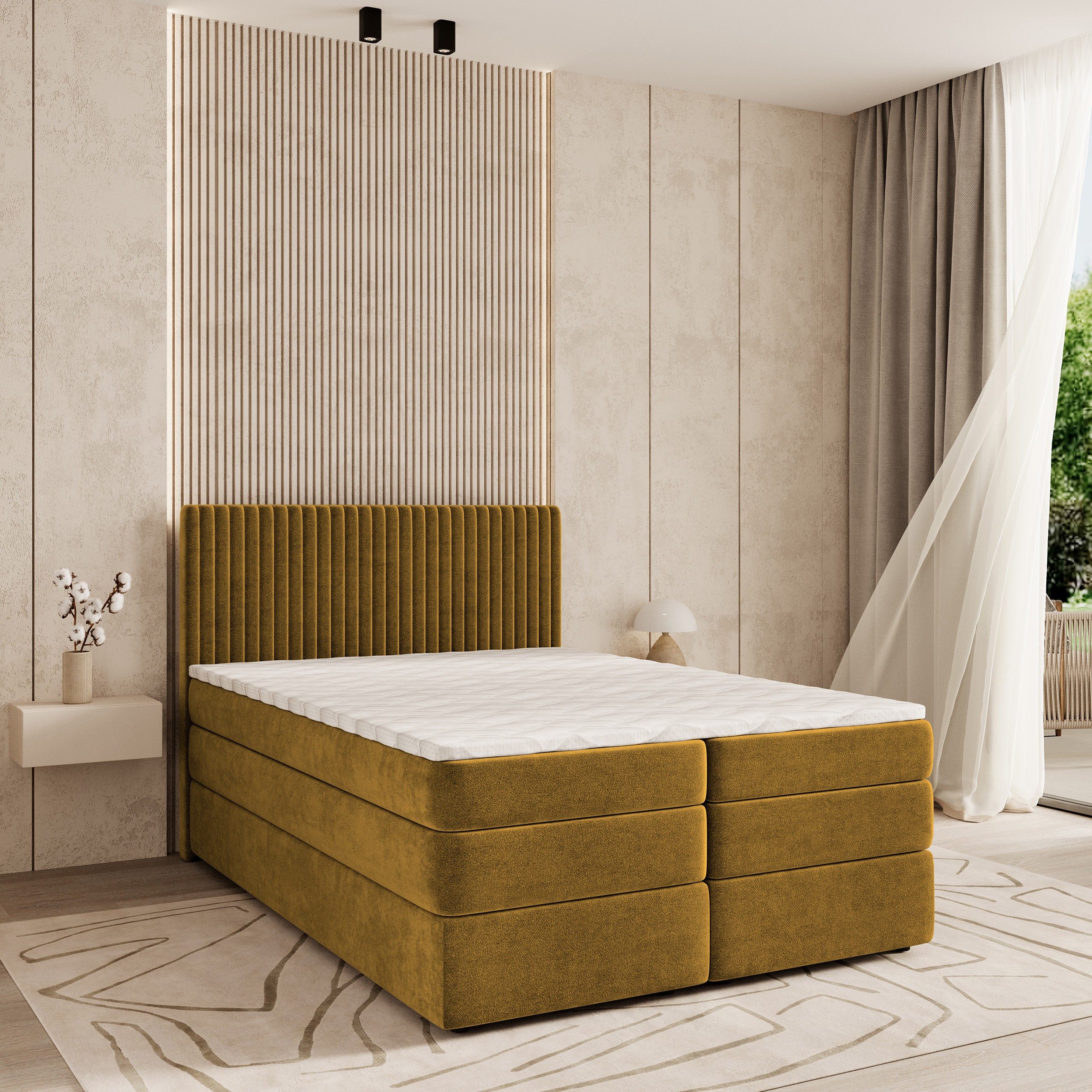 Das Kontinentalbett FELBIO ist die ideale Lösung für alle, die nach einer Harmonie zwischen Funktionalität, Ästhetik und Komfort suchen. Mit größter Sorgfalt entworfen, passt es sowohl in klassische als auch in moderne Innenräume und verleiht Ihrem Schlafzimmer einen einzigartigen Stil und Luxus.