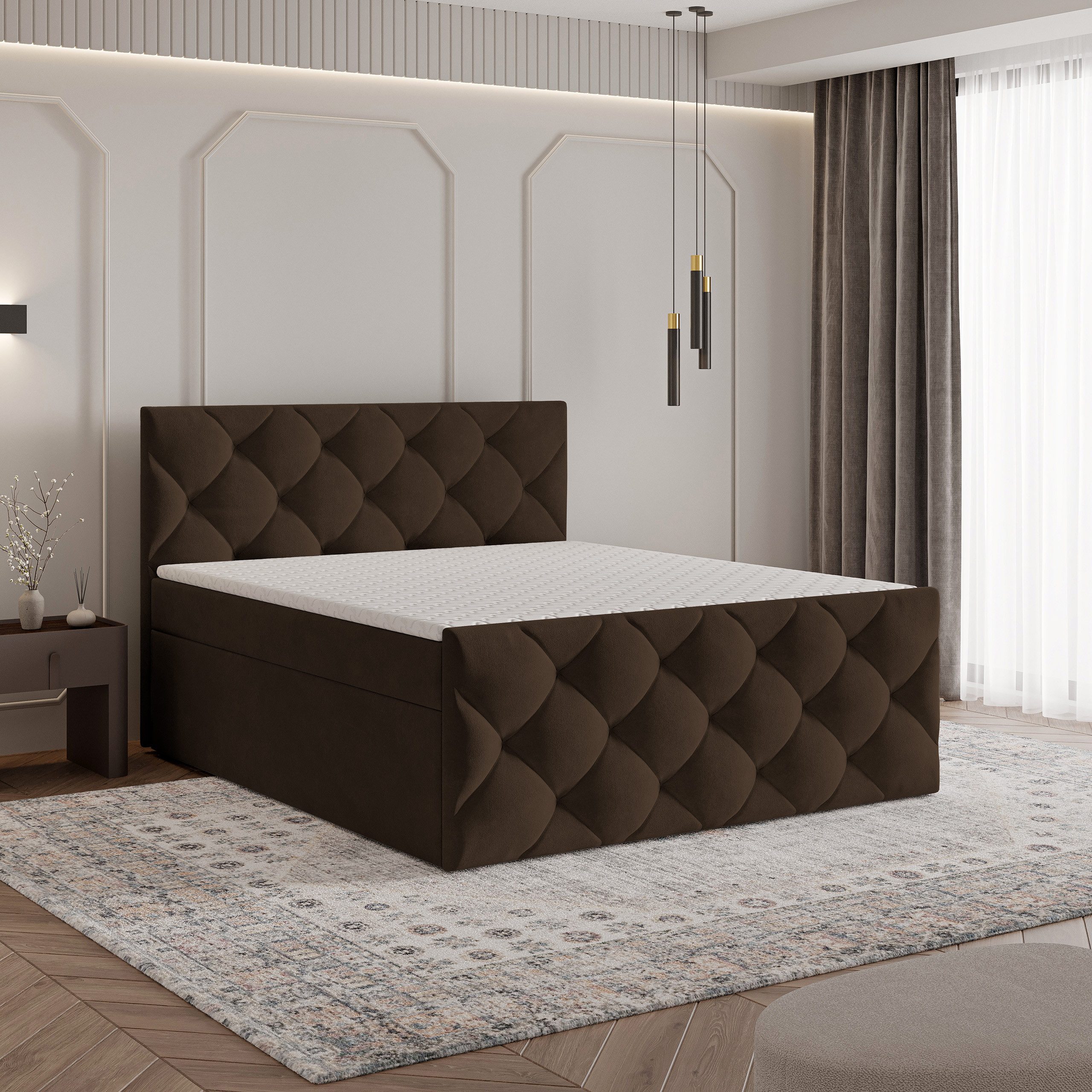 Das dekorative Kopfteil und der angenehm weiche Stoff KRONOS 27 verleihen dem Bett ein modernes und zeitloses Aussehen, das sich in jedes Schlafzimmer perfekt einfügt.