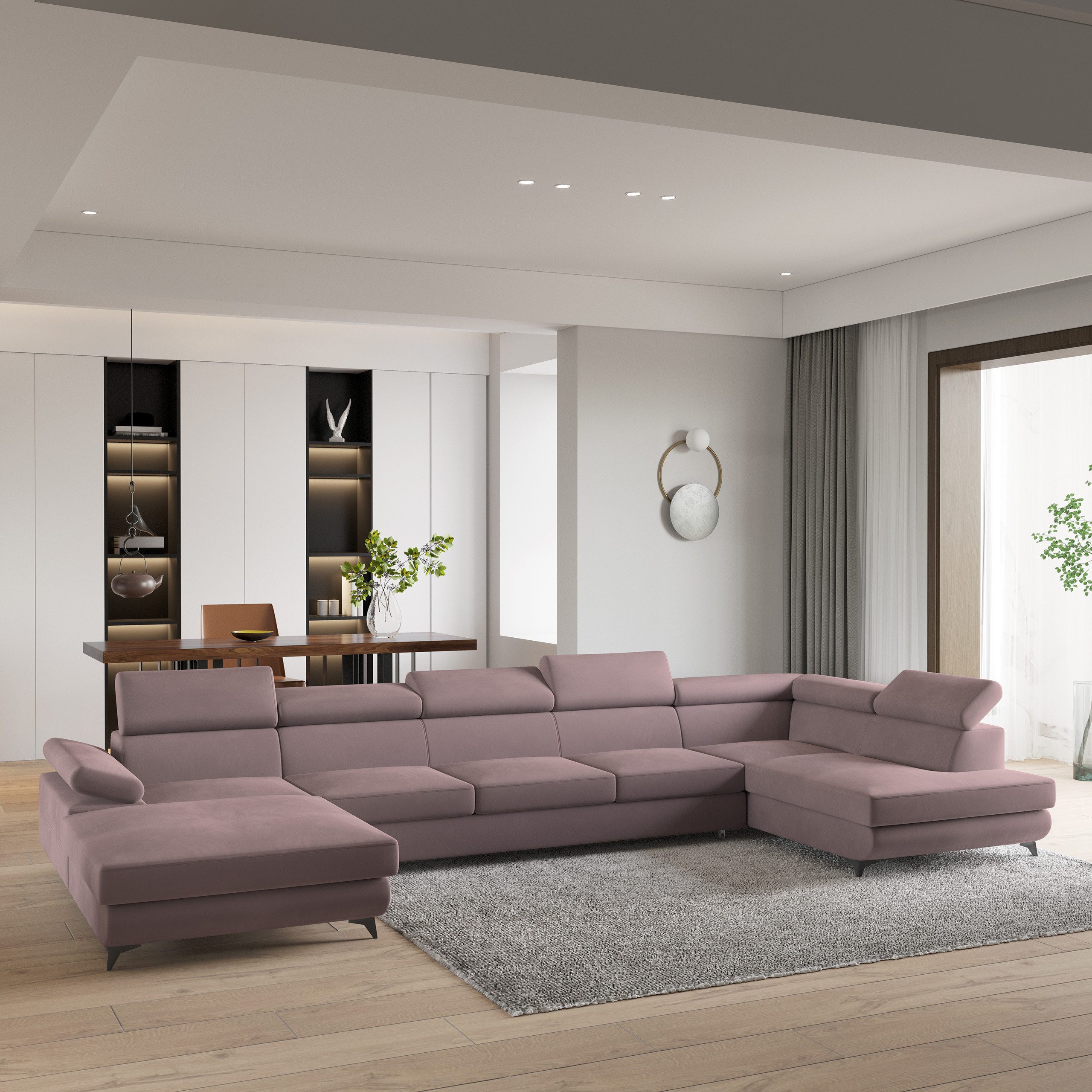 Wenn Sie das Ecksofa MONTIVA als Insel im Raum aufstellen, wird dieser Effekt noch verstärkt, und dank der Применитьung ganz aus demselben Stoff ist es ein freistehendes Möbelstück.