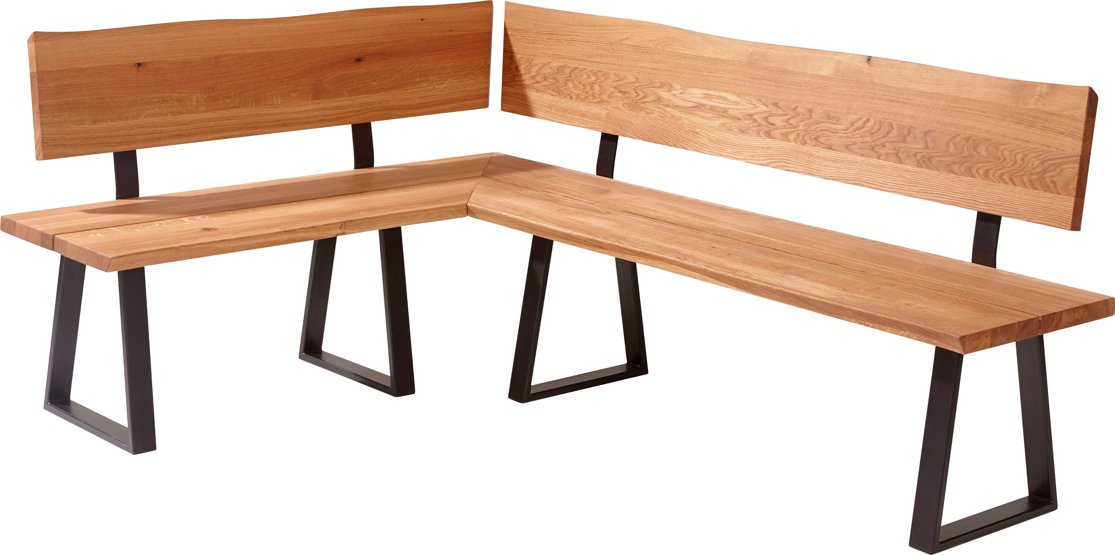 Ergänze deine Einrichtung stilvoll mit der Eckbank »Oviedo« von massivline&more mit Metallgestell. Diese Bank ist eine praktische Sitzgelegenheit für Küche, Esszimmer oder die Garderobe und sorgt überall für einen attraktiven Hingucker. Gefertigt wird sie aus massiver, Wildeiche, die zusätzlich geölt ist. Daher sind die Oberflächen pflegeleicht und können feucht abgewischt werden. Das formschöne Kufengestell sorgt für Stabilität und rundet das zeitlose Design ab. Passende Auflagekissen können separat bestellt werden. Kombiniere diese Bank mit unterschiedlichen Einrichtungsstilen – sie passt zu klassischen Möbeln ebenso wie zu rustikalen. Bietet viel Platz für gemütliche Stunden mit Familie und Freunden: die Eckbank mit Metallgestell »Oviedo« aus dem Hause massivline&more.