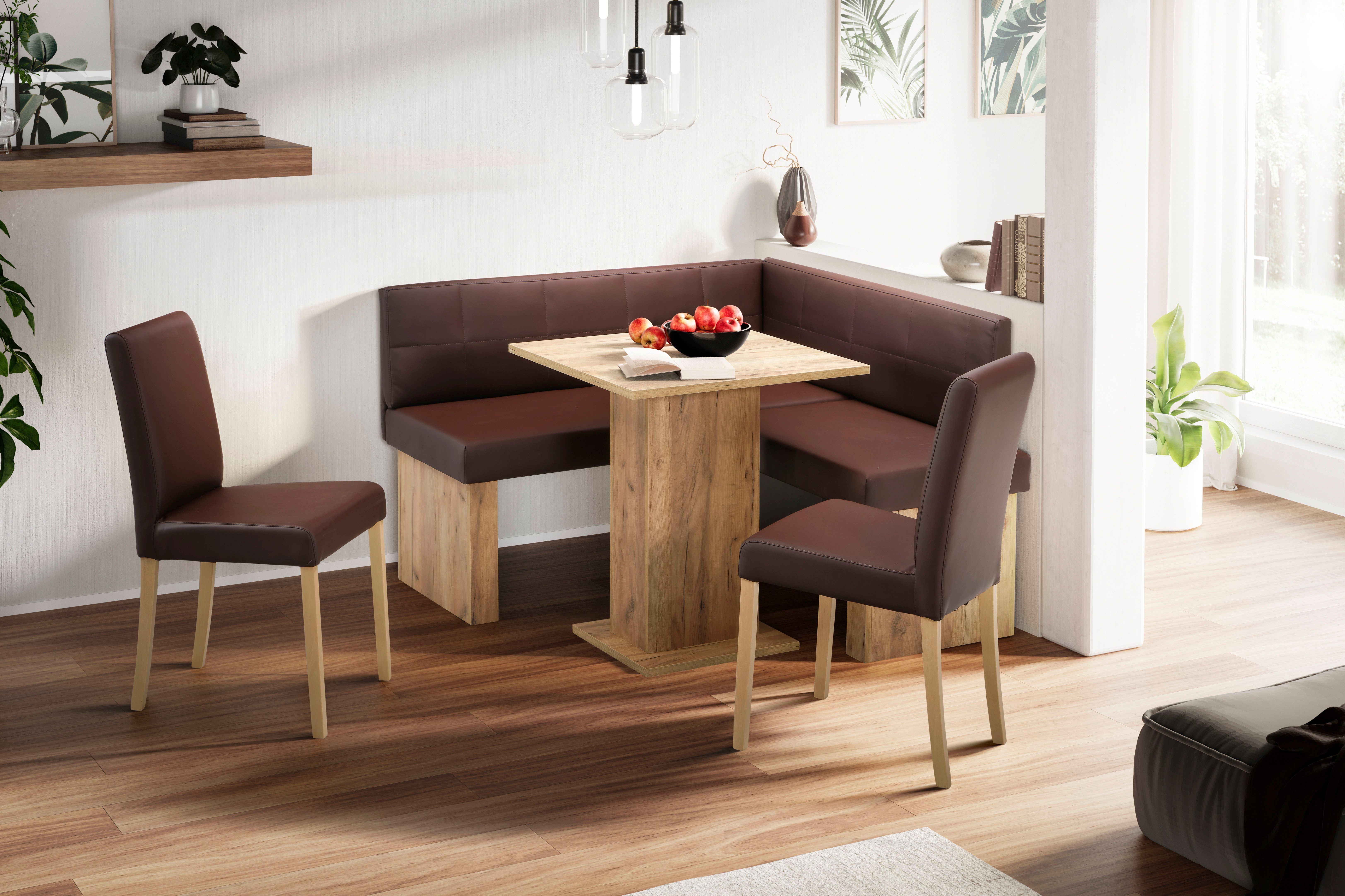Ausführung | 2 x Stühle Anna Eckbank Anna 130 cm x 130 cm Golden Oak dekor Lotos 5093 dunkelbraun Säulentisch Anna 68 cm x 68 cm |