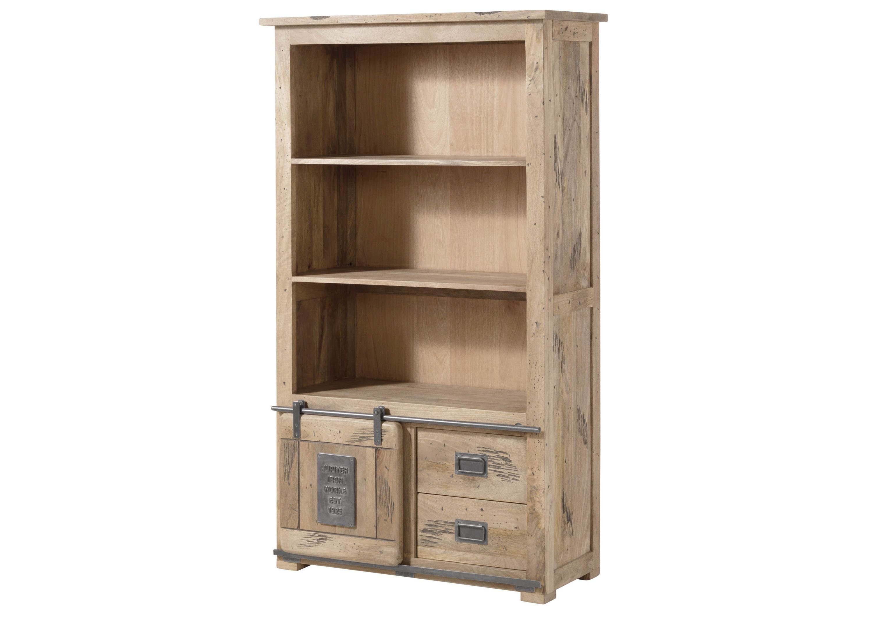 Dieses Standregal aus vollmassivem Mangoholz zieht mit seiner einmaligen Optik alle Blicke auf sich. Ein besonderer Hingucker ist dabei die Schiebetür im angesagten Industrial-Style, die auf Schienen aus schwarzem Metall gleitet und so wahlweise den Blick auf die beiden Regalfächer oder die Schubladen freigibt. Im oberen Bereich begeistert das Regal außerdem mit jeder Menge Stauraum auf Einlegeböden aus Massivholz, der Geschirr oder dekorative Lieblingsstücke perfekt in Szene setzt.